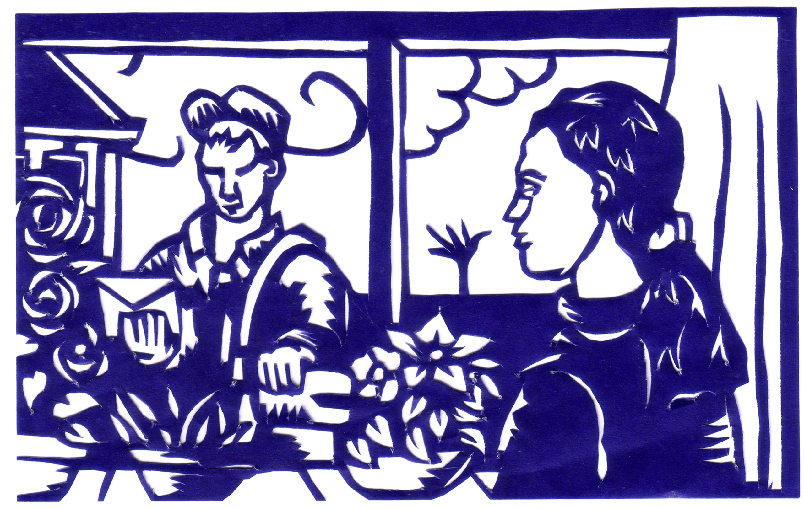 Wachten Postbode Post Mailman Waiting Knipsel Knipkunst Papierknipkunst Papercutout Decoupage Scherenschnitt