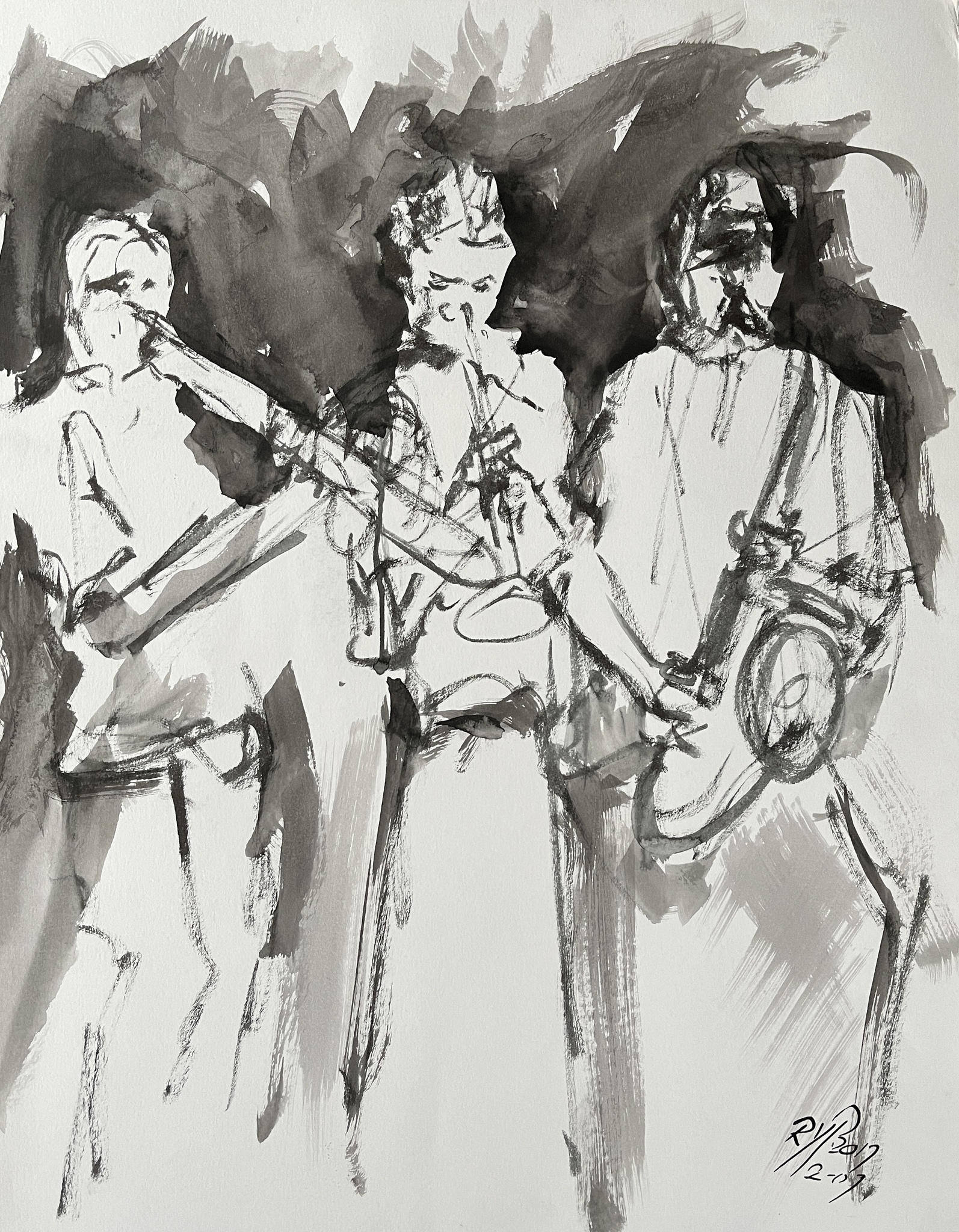 Blazers - acrylinkt op aquarelpapier