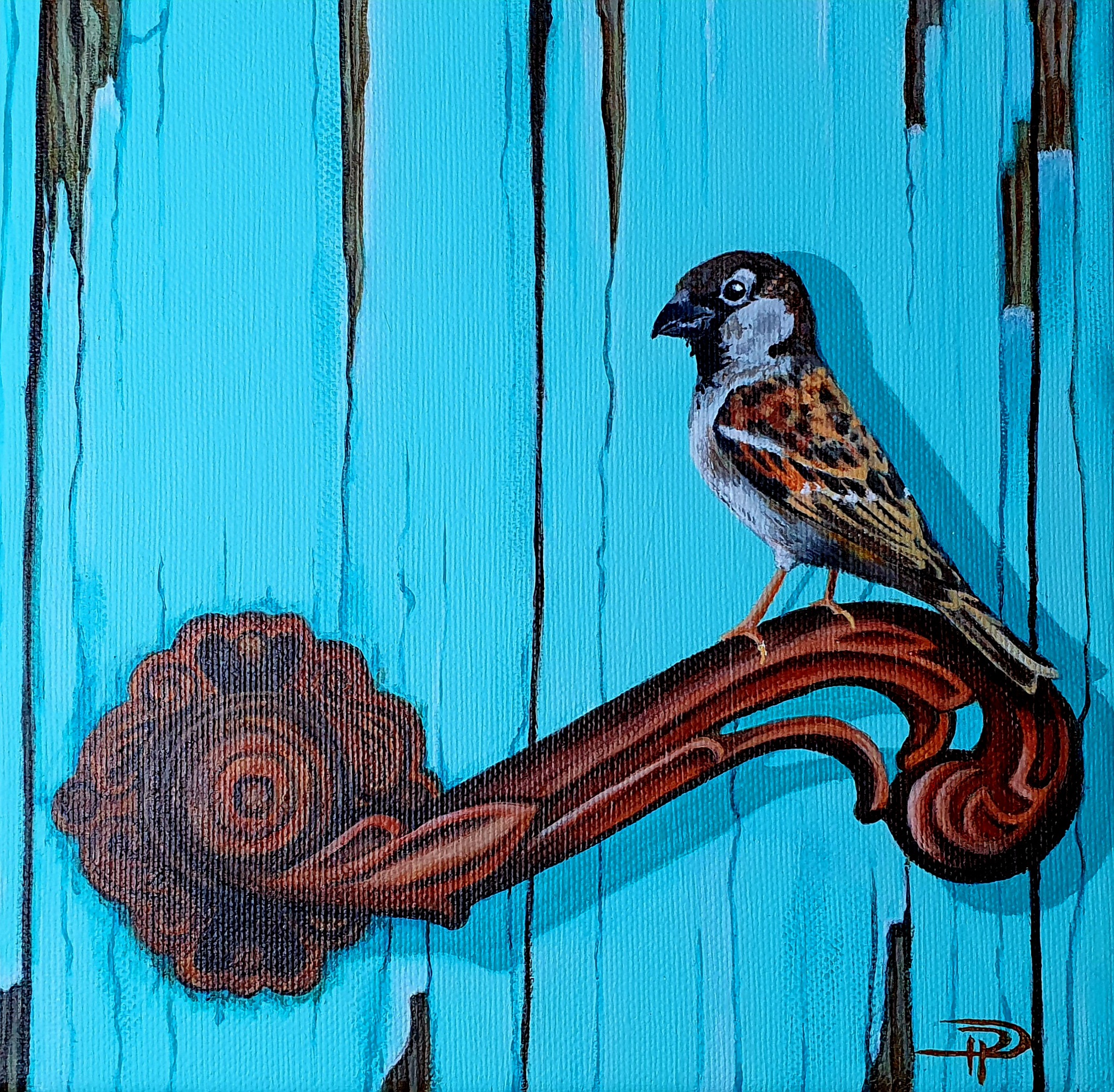 Deze deurklink symboliseert dat jij in staat bent om de deur voor Jezus te openen. De Mus is een heel gewone vogel en laat zien dat deze deur voor iedereen te openen is. Johannes 10:9: "Ik ben de deur; als iemand door Mij binnengaat, zal hij behouden worden; en hij zal in- en uitgaan en weide vinden."