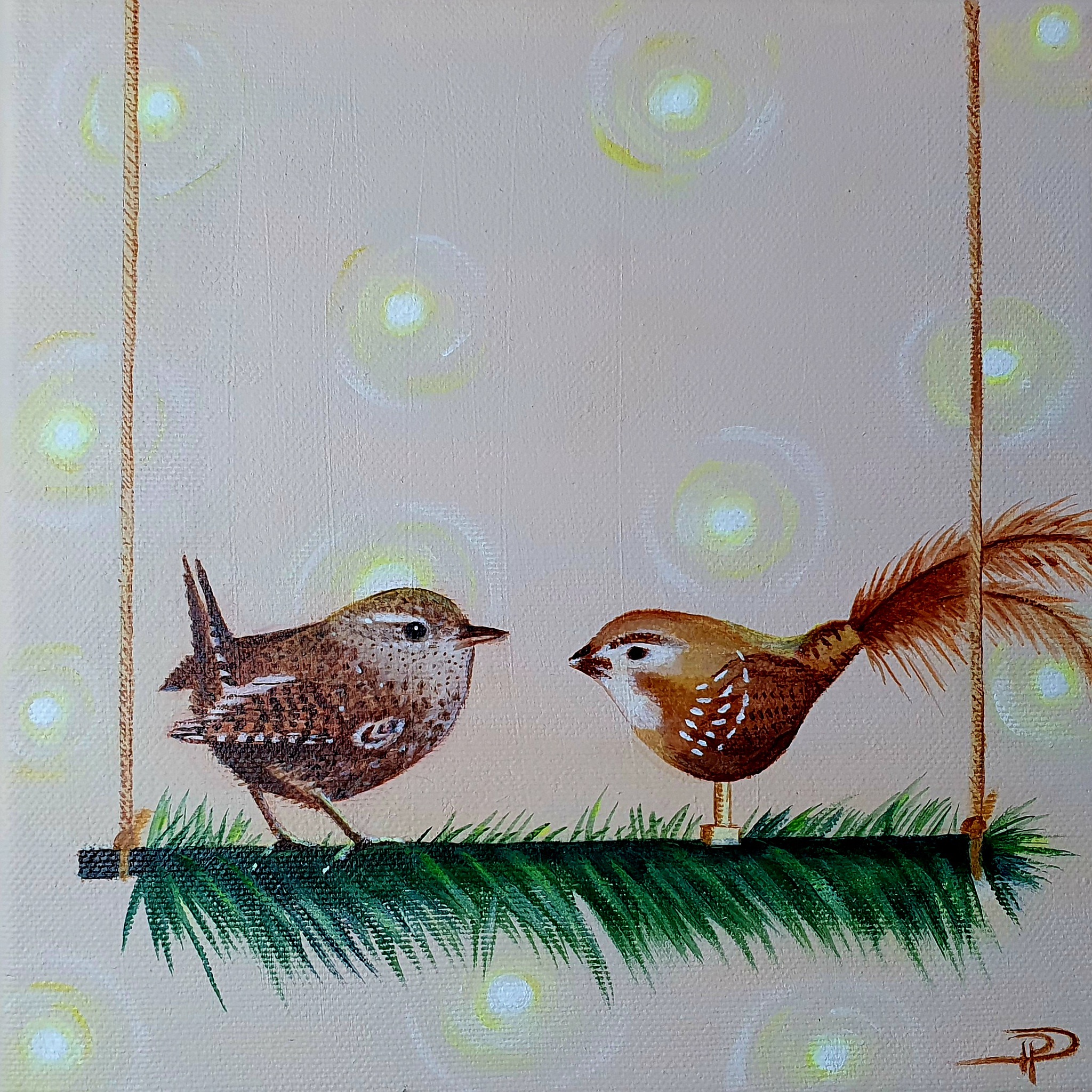 Deze vogels zijn vrienden van elkaar, ook al zijn ze niet hetzelfde. Moge dit schilderij je herinneren aan jou vrienden,