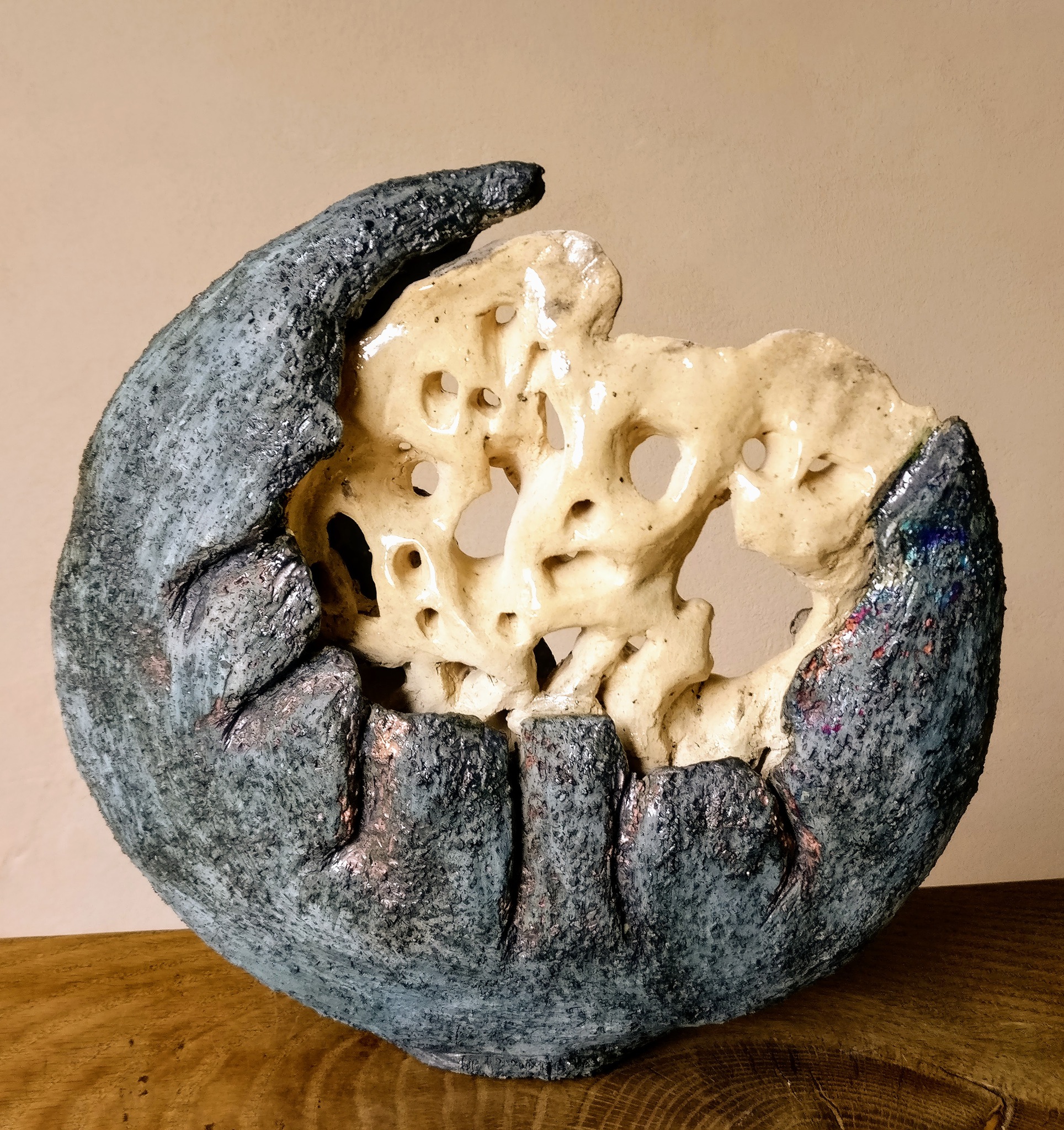 Organisch opengewerkte deel in ruwe vormgeving