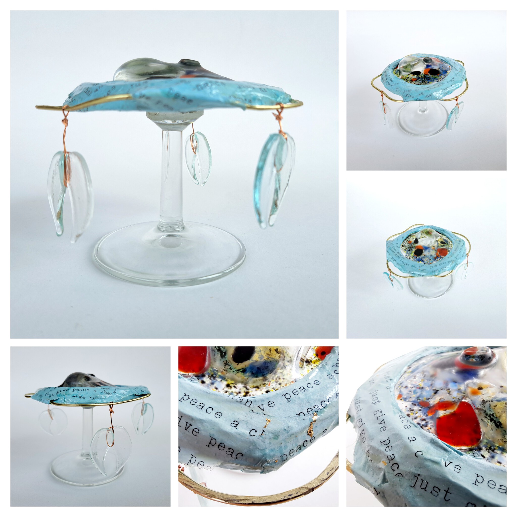 Glasobjectje gemaakt van gerecycled glas, metaal en papier mache.