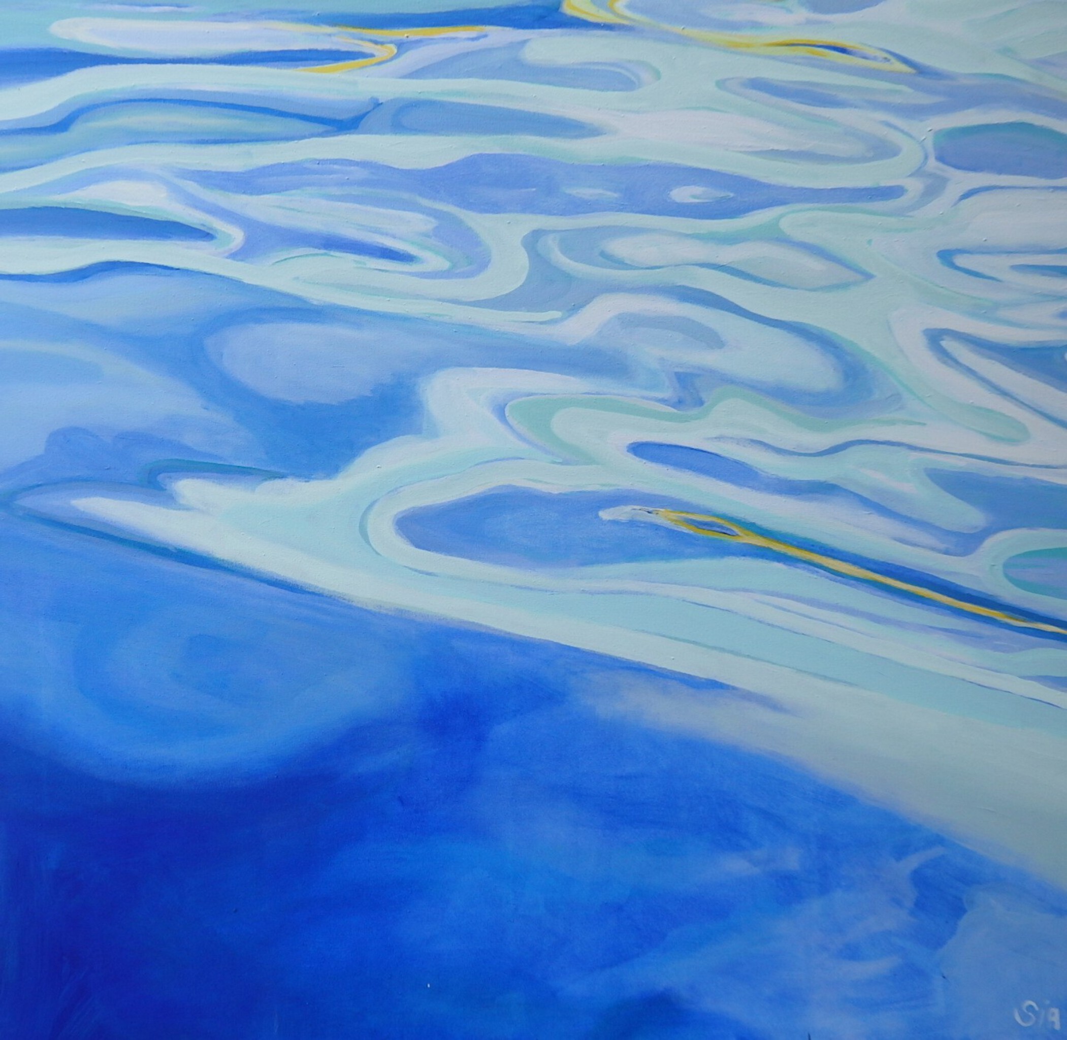 Mijn schilderijen zijn in acrylverf op doek of paneel, in een beperkt kleurenpalet. Ik heb de Rietveld Academie afgerond: binnenhuisarchitectuur. Schilderlessen heb ik gevolgd op de Gooische Academie.