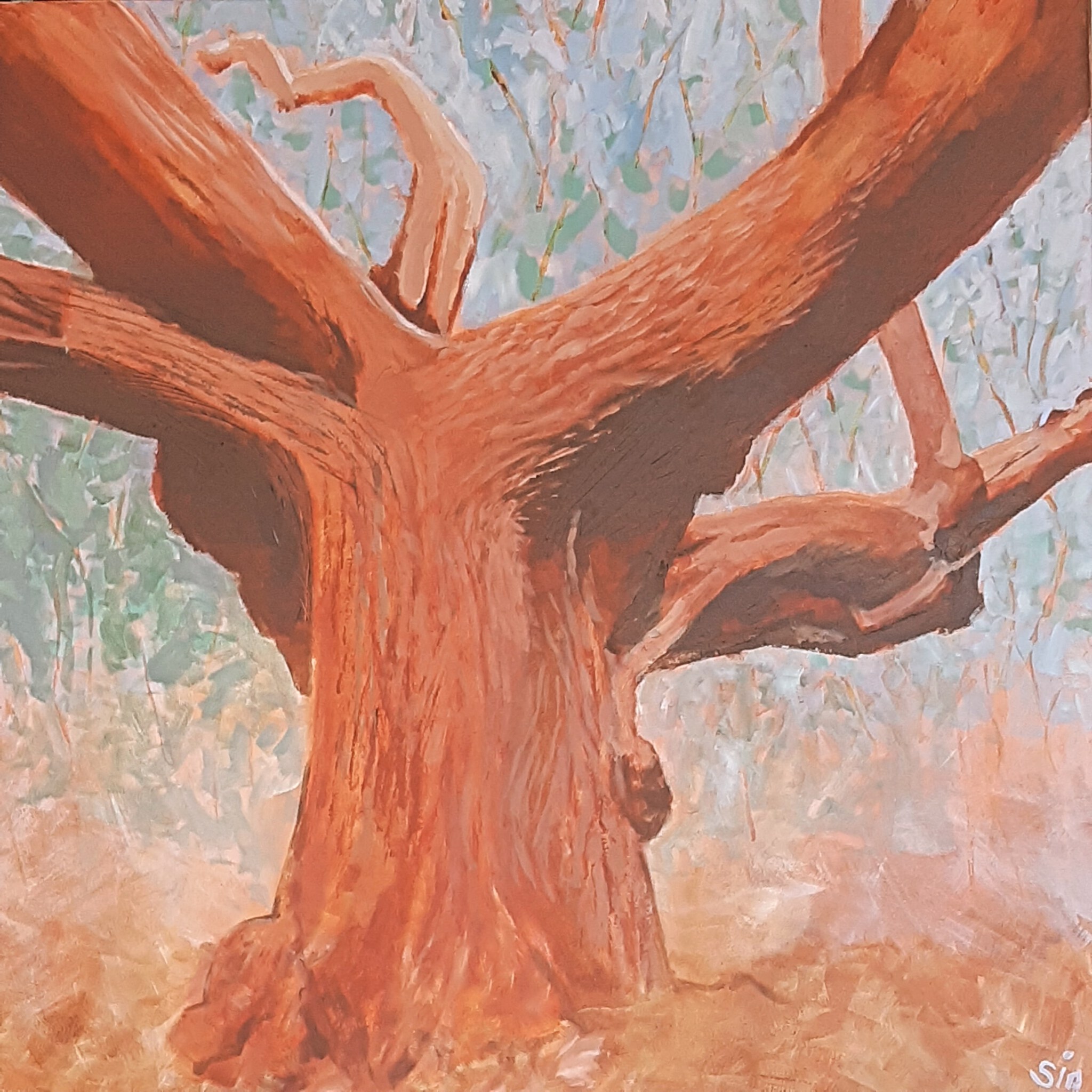 Mijn schilderijen zijn in acrylverf op doek of paneel, in een beperkt kleurenpalet. Ik heb de Rietveld Academie afgerond: binnenhuisarchitectuur. Schilderlessen heb ik gevolgd op de Gooische Academie.