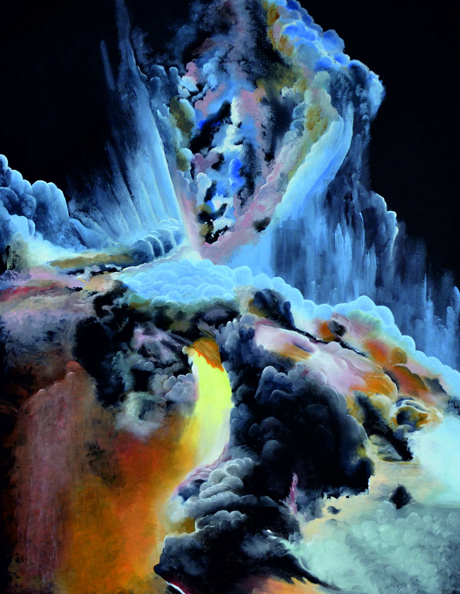 Stardust, H2Olieverf op masoniet. Stardust is een nevel in de ruimte. Het is een enorme gas- en stofnevel uitgestoten door een explosie van een stervende ster. Andere nevels zijn gebieden waar zich nieuwe sterren beginnen te vormen.