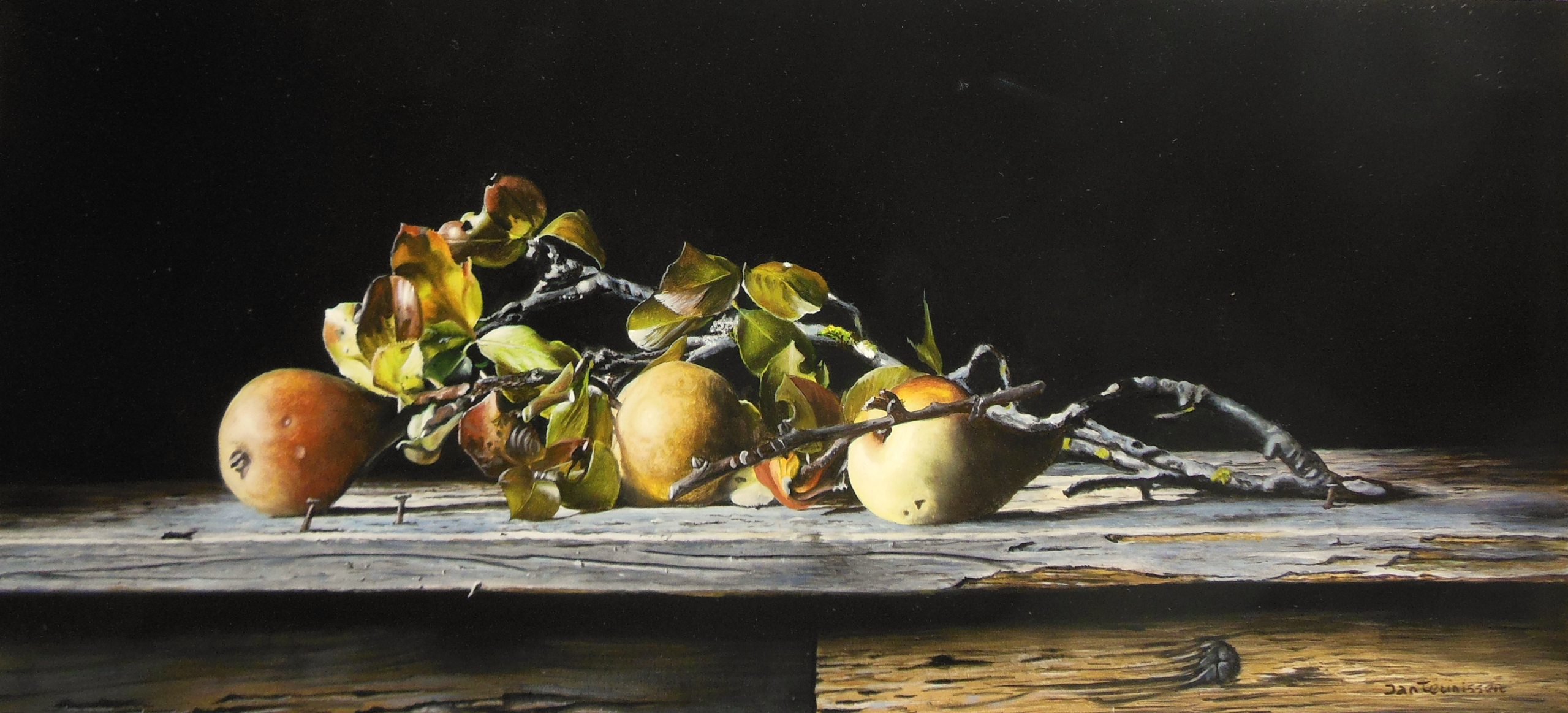 Stilleven Donker Drie Tafel Tak Peren Spijkers