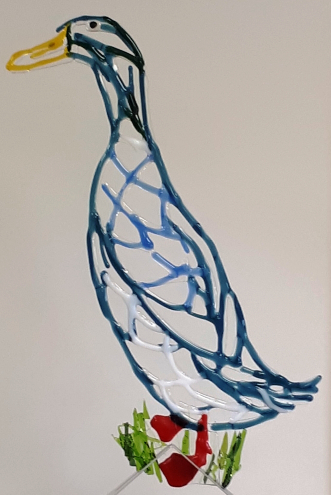 Oranje Geel Blauw Yellow Glas Blue Glaskunst Orange Glasfusie Glass Glassart Glassfusion Scheltema Bullseyeglass Louky Loukyscheltema Loopeend Runnerduck