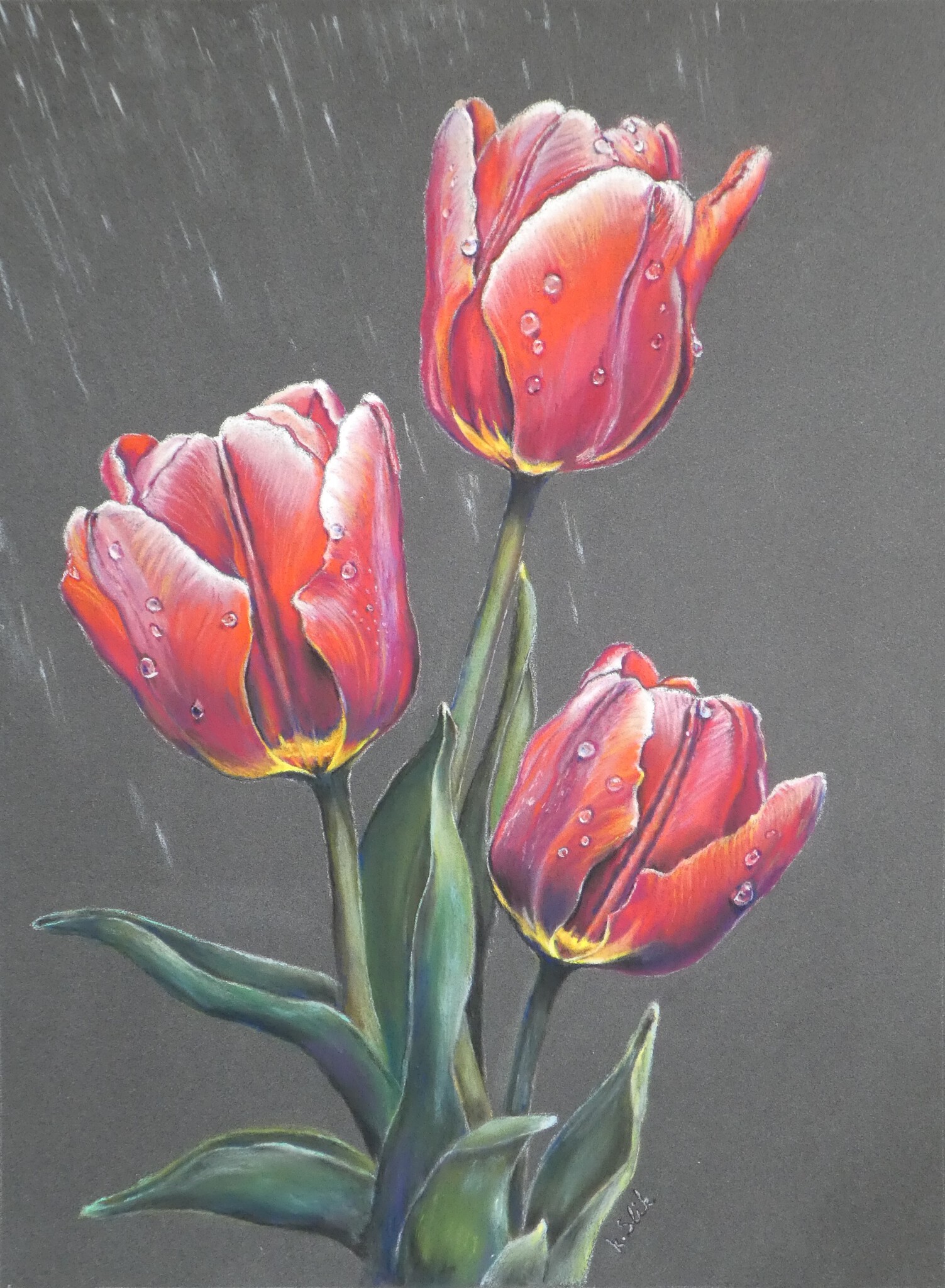 Rood Tulpen Bloemen Natuur Pastel Regen