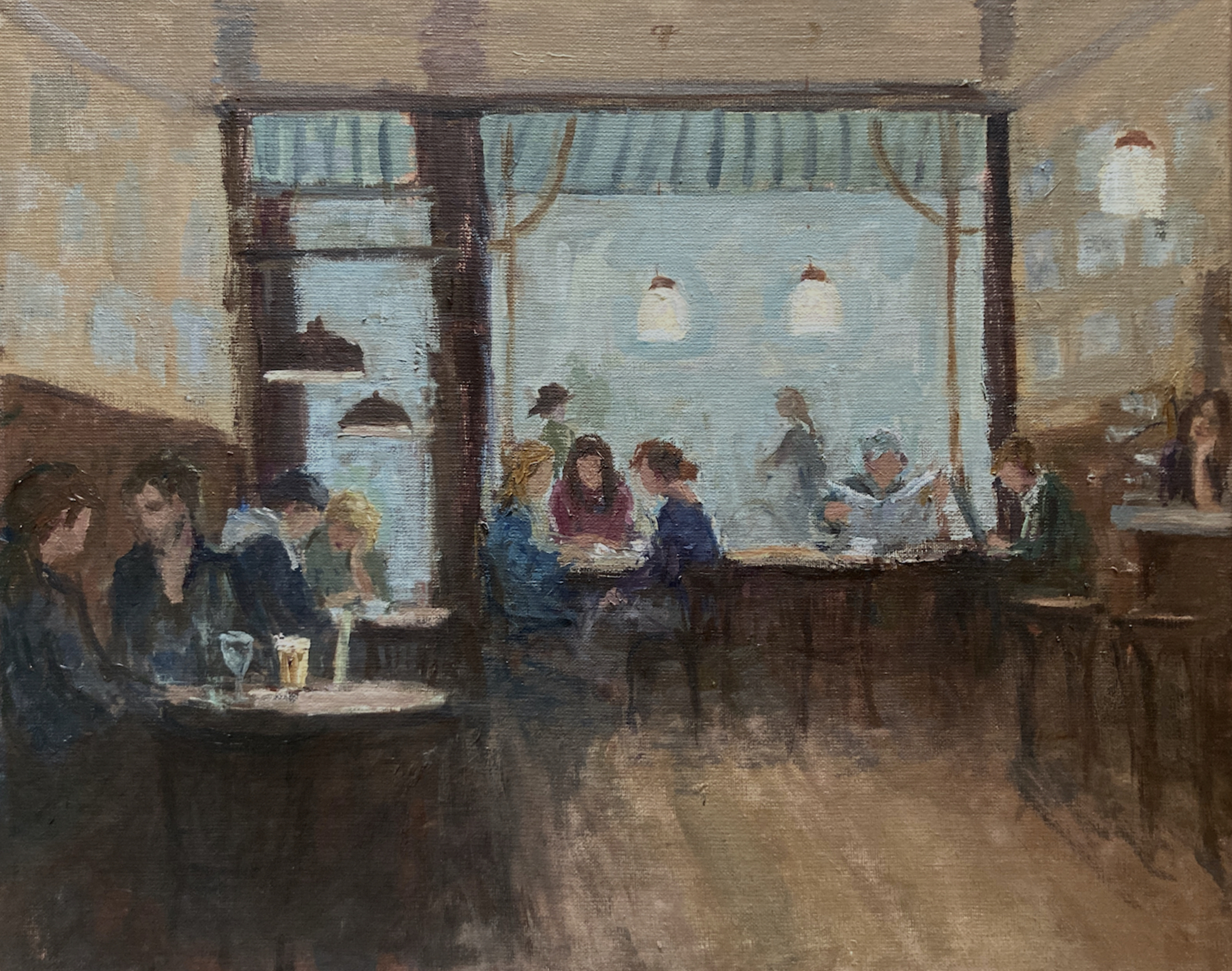 Ik schilder het dagelijkse leven. Scènes die mij frapperen leg ik vast in schetsboekjes en daaruit ontstaan schilderijen.