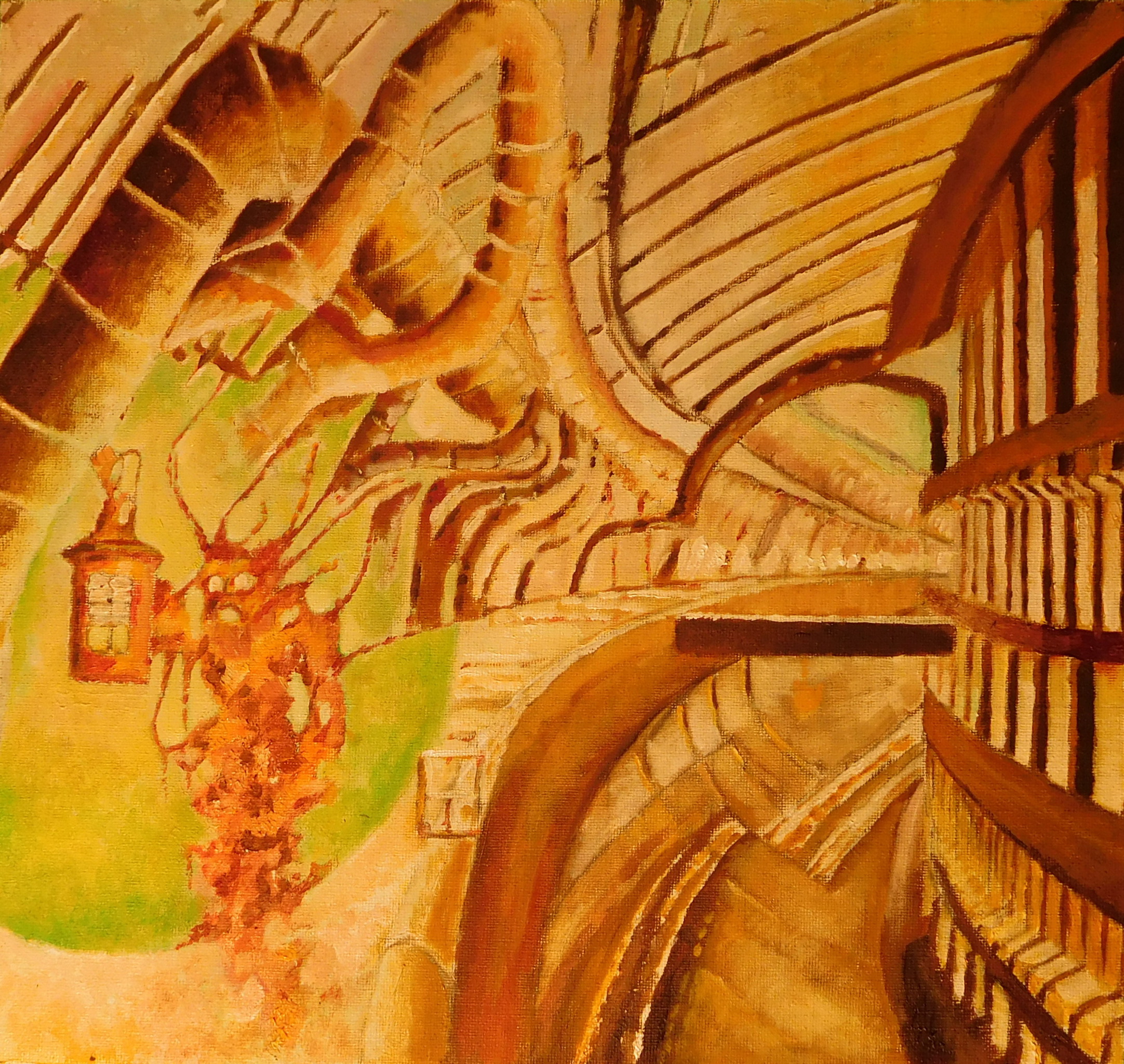 Stijlelementen uit het symbolisme en het futo-realisme vormen mijn inspiratie. Fantasie en werkelijkheid komen tot leven in kleurrijke straattaferelen, vreemdsoortige bouwsels en perspectivische vergezichten.