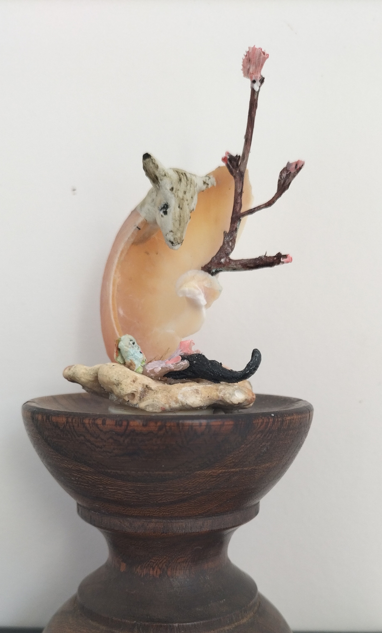 4. mixed media in glazen stolp op houten voet