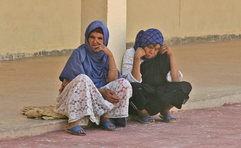 Als de beide Bedouinenvrouwen zijn uitgepraat rest nog slechts een zorgelijk voor zich uitstaren. Deze foto vormt een 2-luik met de foto 'Een zwaar gesprek'.