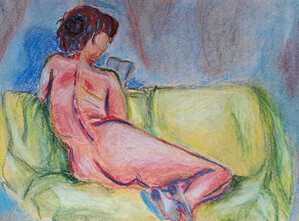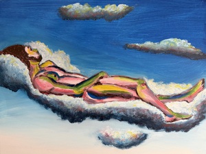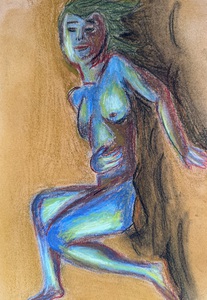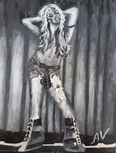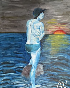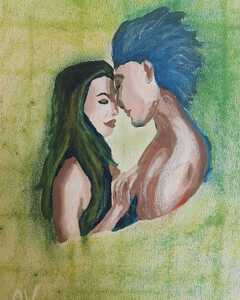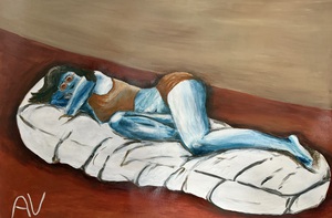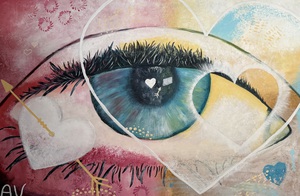 Mijn schilderij vertelt een verhaal van een persoon in emotie van angst, verdriet of boosheid. Elk persoon kijkt door zijn eigen bril en maakt zijn eigen verhaal. Dat is wat ik zo mooi vind!