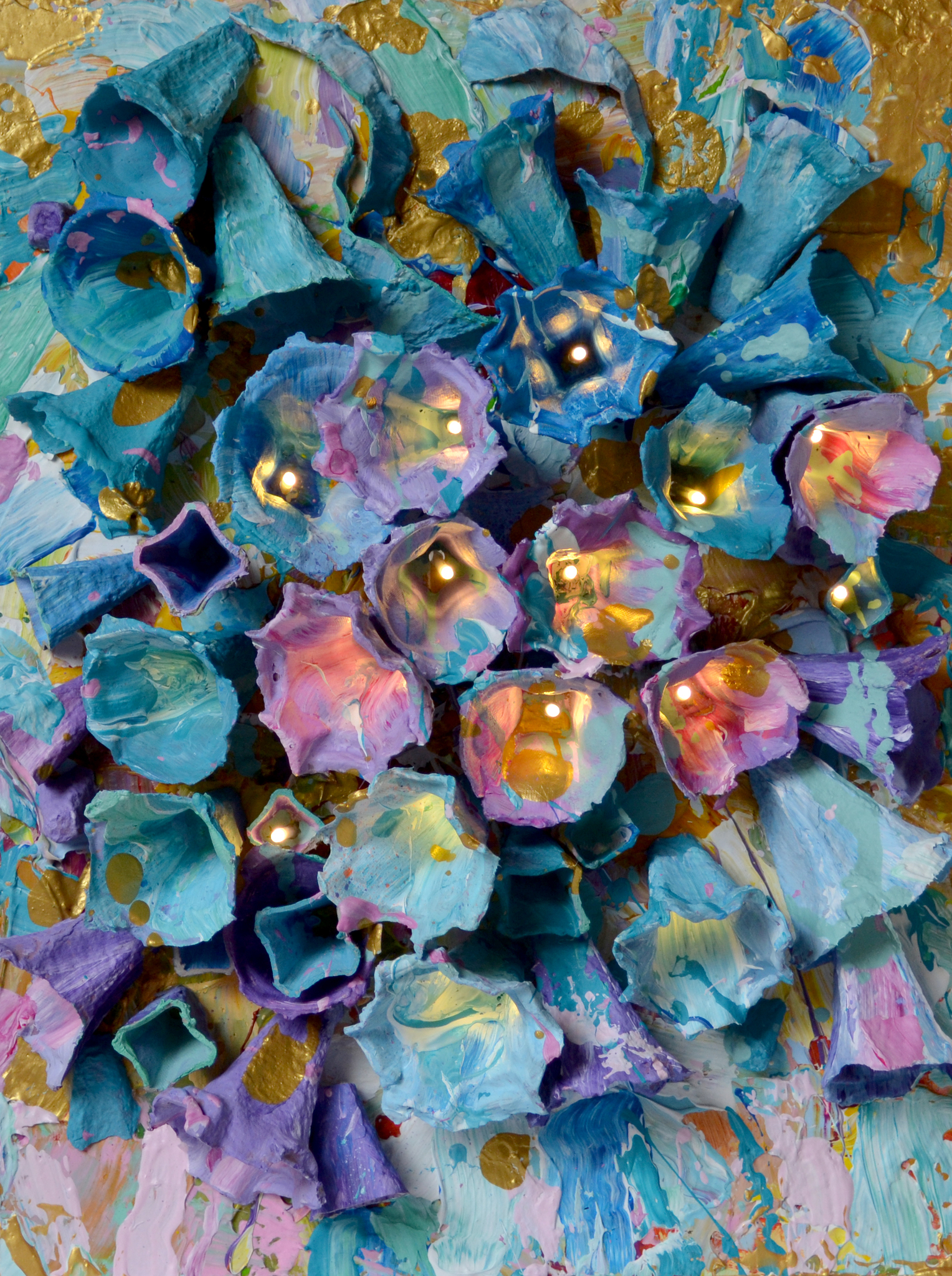 Abstract Gold Art Blue 3d Object Light Purple Flowers Led Lights Papier-mâché