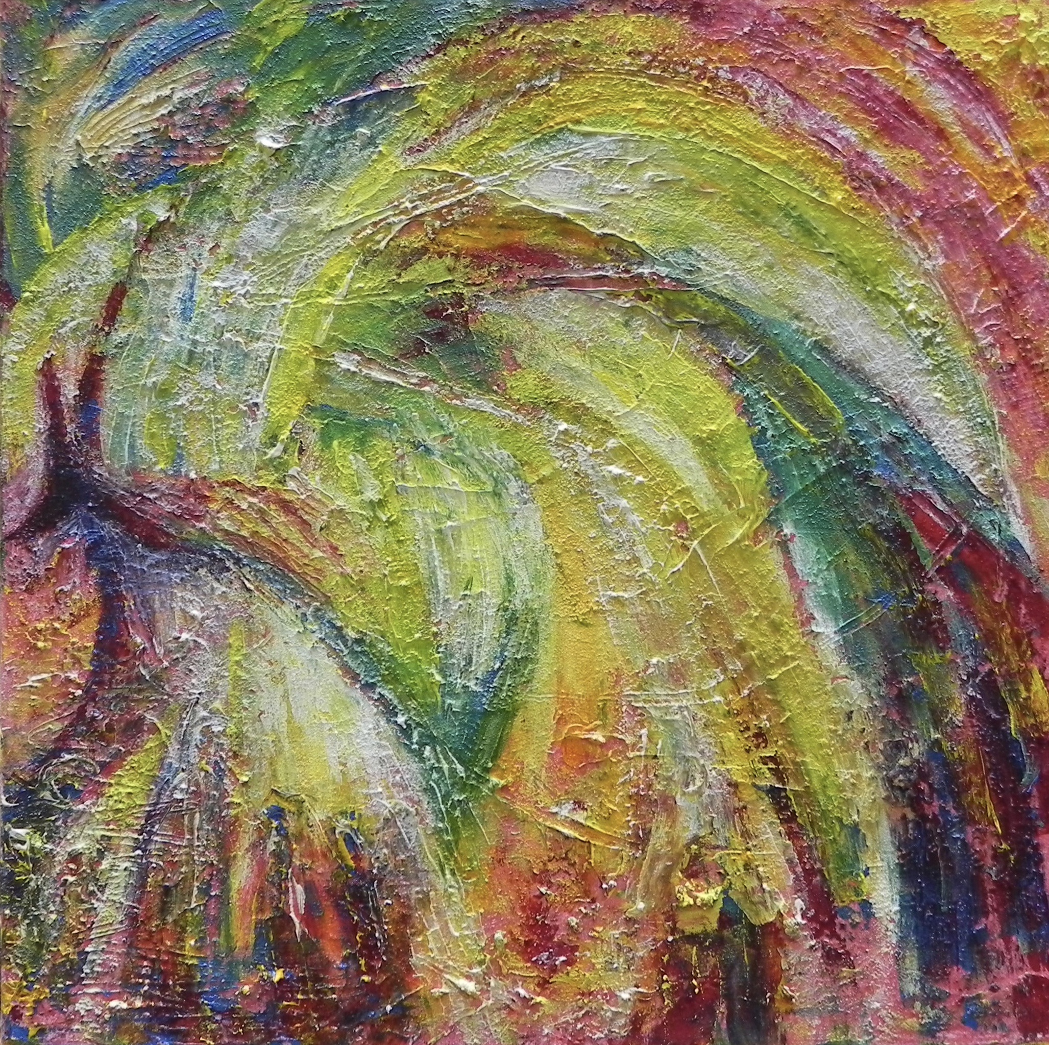 De Ygdrasil, wereldboom, heilige boom in de oude Noorse verhalen, waarover je kan lezen in de Edda ... acrylverf op doek, ca 50 x 50 cm ... Thuisgekomen in een zorgvoorziening met werkplaatsen in Wijhe