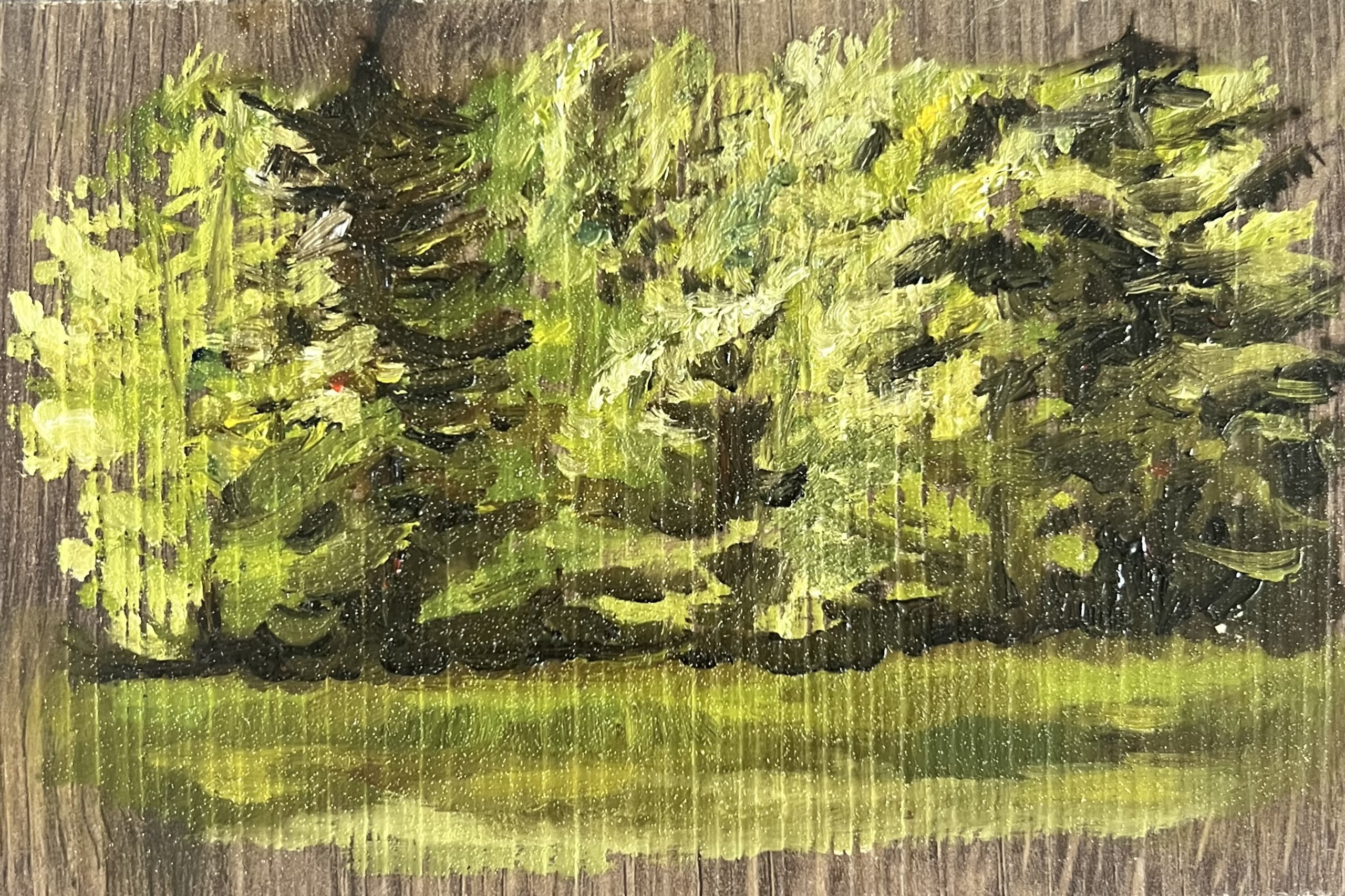Groen Olieverf Paneel Bomen Lente Dennenboom Loofbomen Gemengd Woud Tsjechië Pleinair