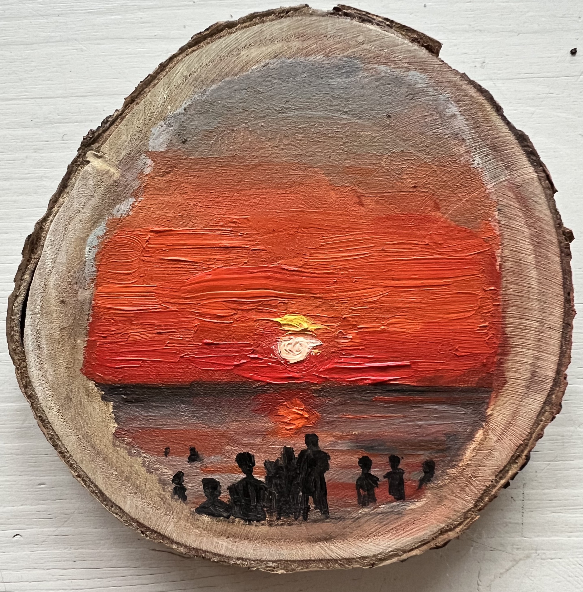 Zee Strand Oranje Zonsondergang Realistisch Impressionistisch Minischilderij Petitpeintre