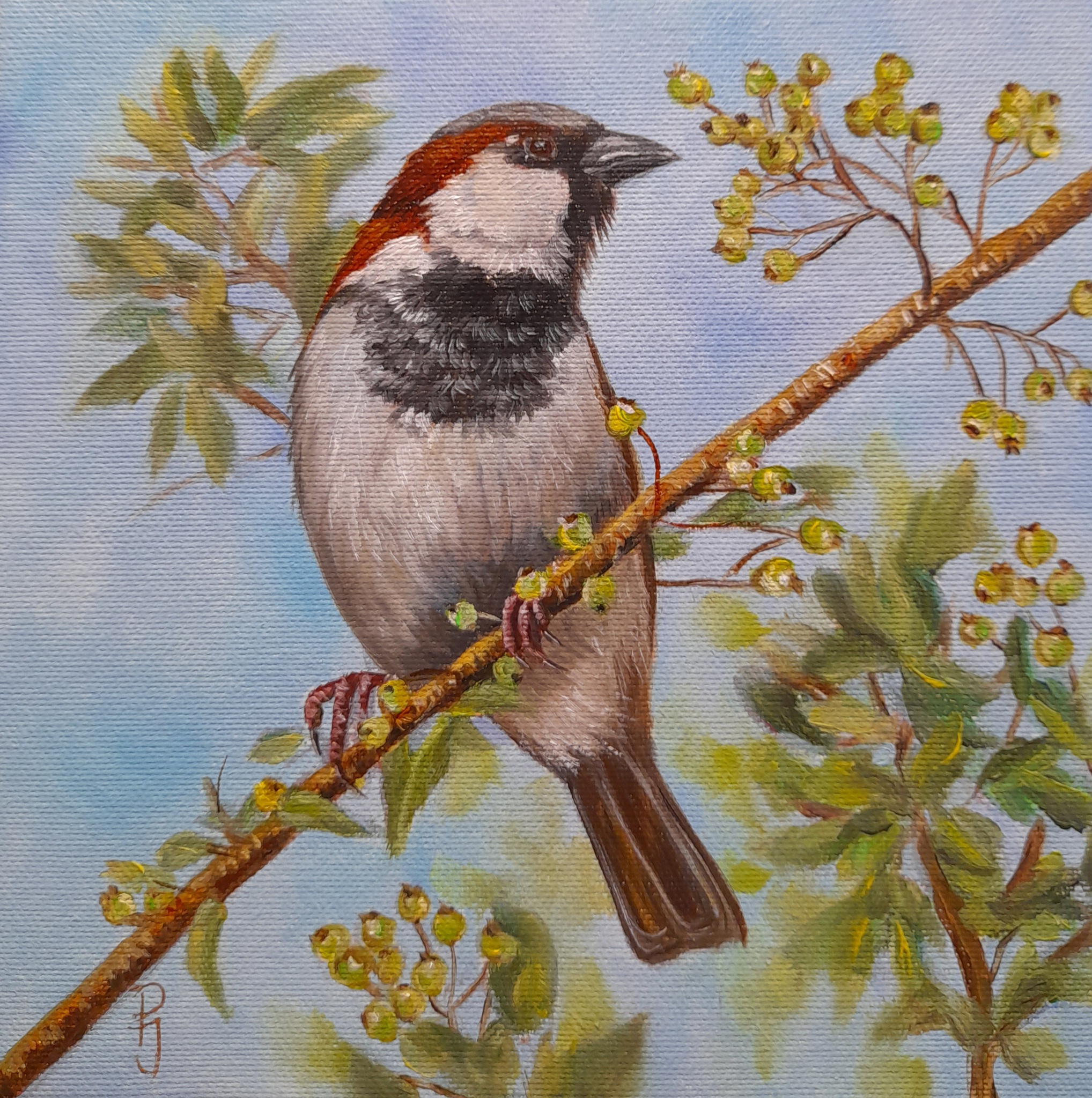 Schilderij Mussen Mus Vogelschilderij