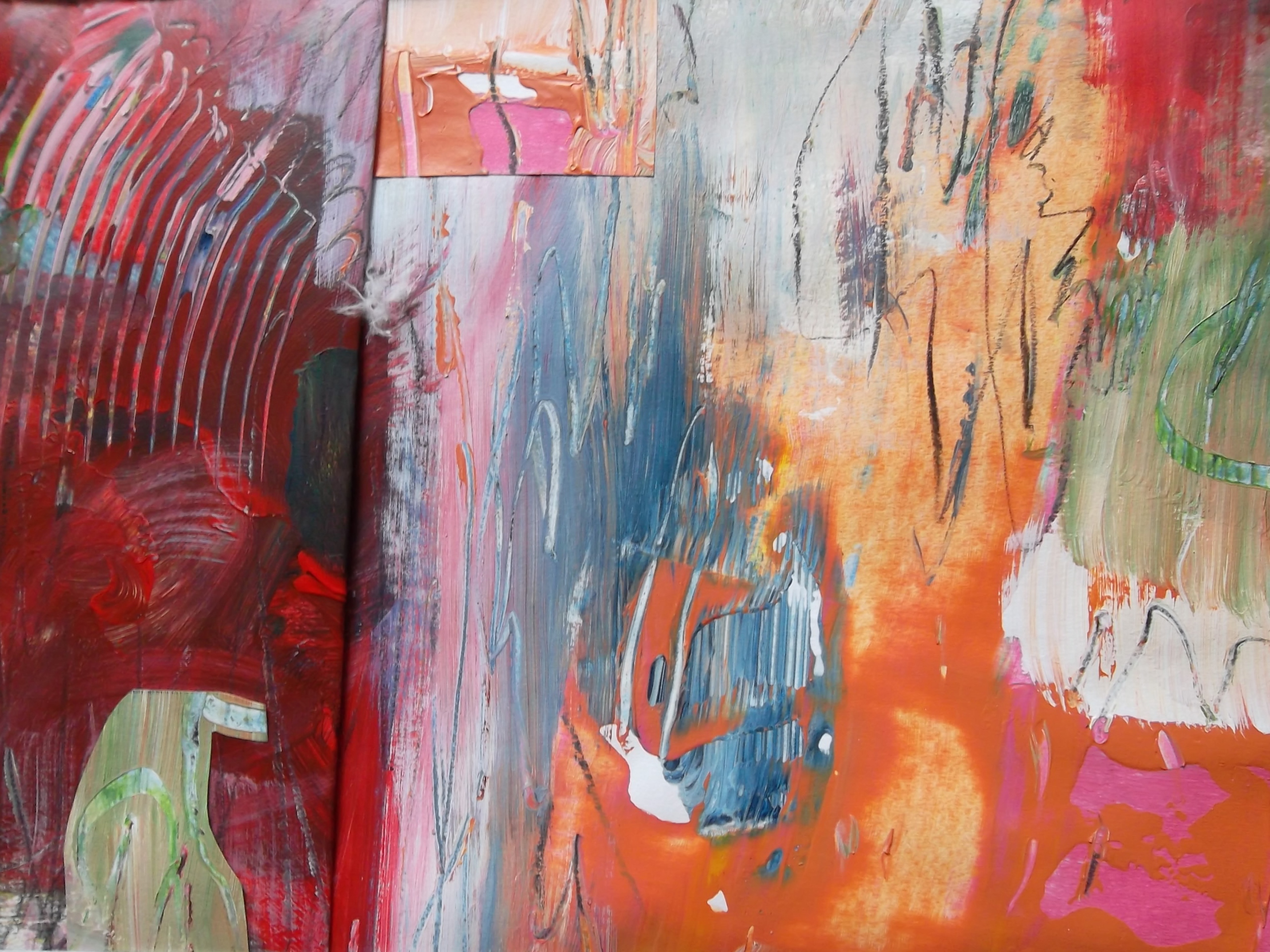 Rood Oranje Acryl Groen Klein Papier Krijt Kleurrijk Collage Formaat Veertje Trouvé Objet