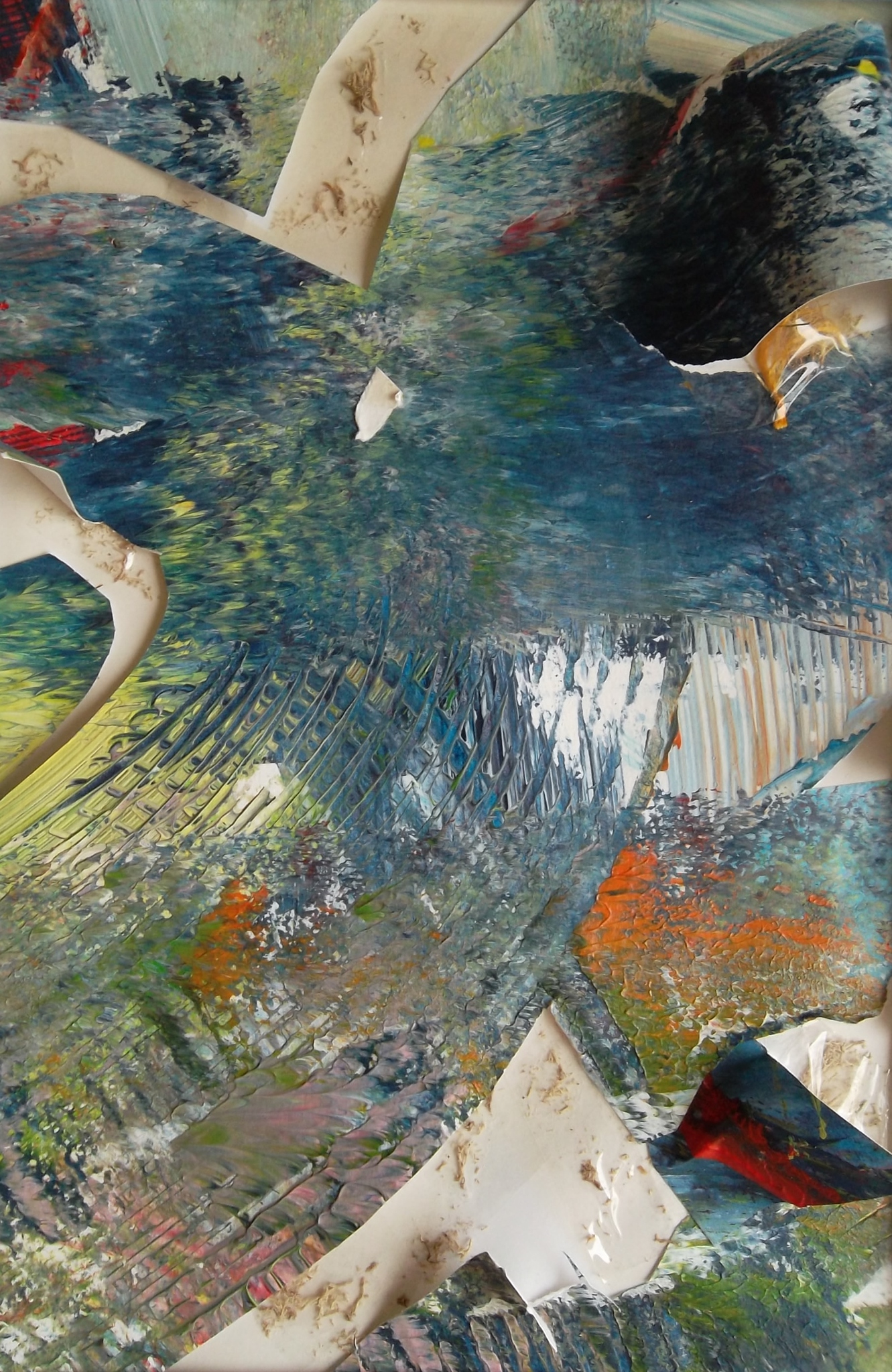 Wit Rood Oranje Blauw Acryl Goud Groen Beweging Natuur Collage Mos Trouvé Objet Zaadjes