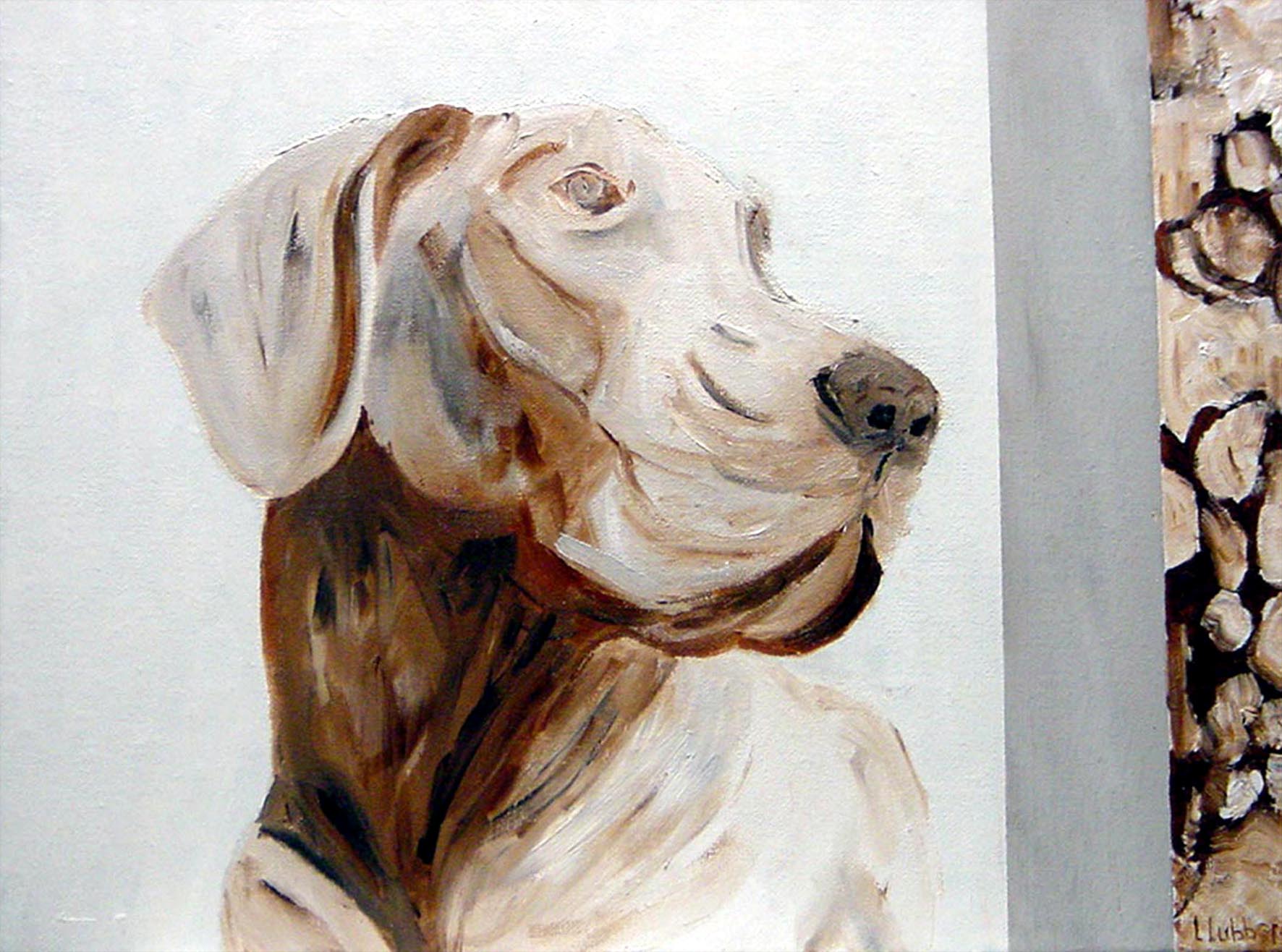 Schilderij Bruin Kop Realistisch Painting Hond Brown Head Dog Realistic Grey Deense Danish