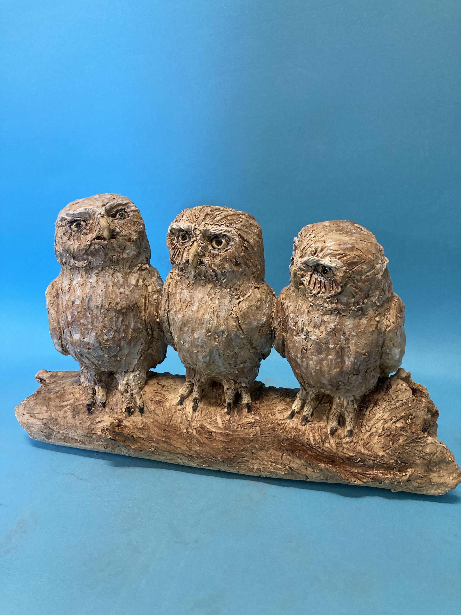 Steenuiltjes Uil Natuur Keramiek Sculptuur Drie Binnen Buiten Beeld Tuin