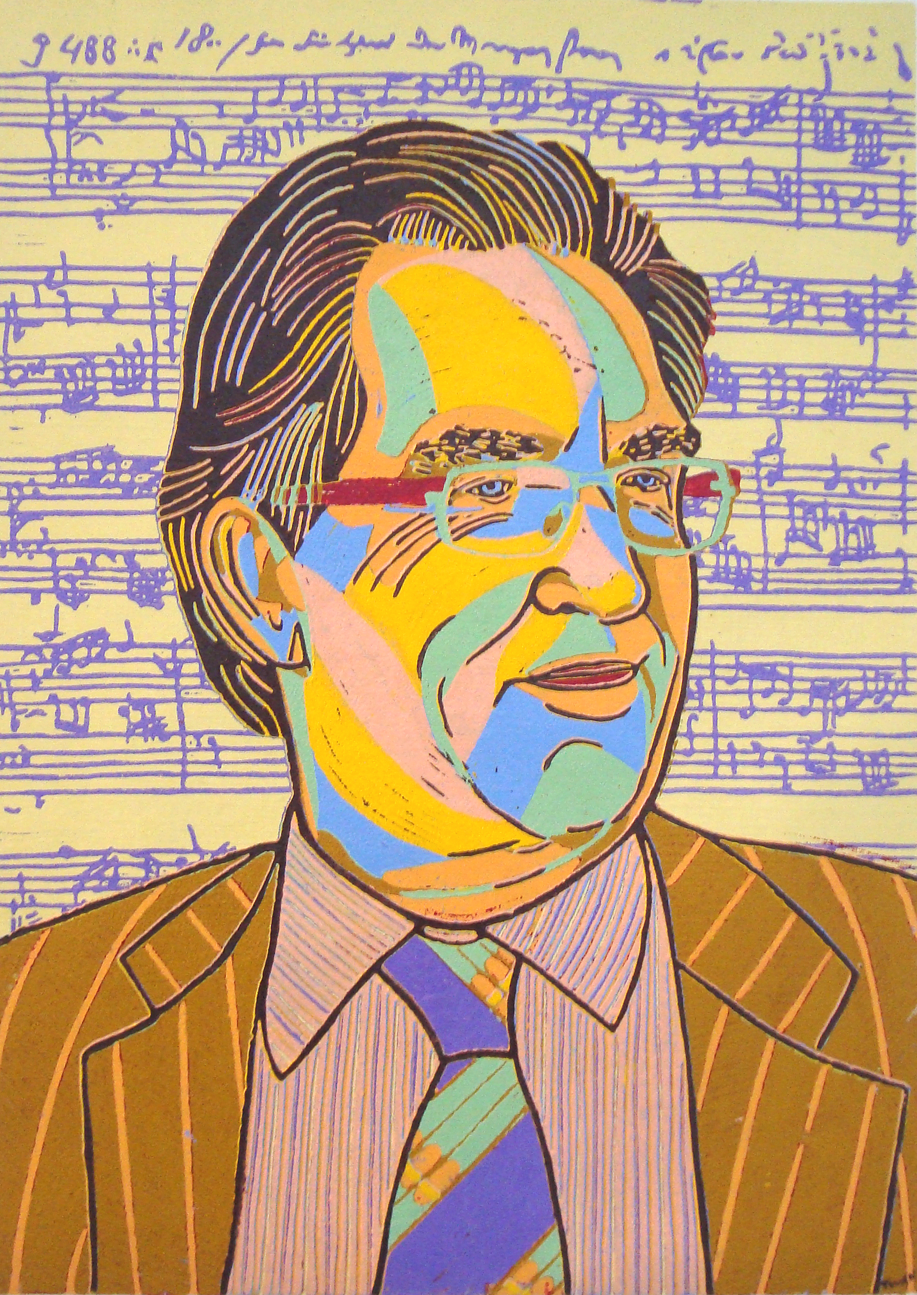 Portret Linosnede Linoleum Portrait Muziek Music Linocut Kado Cadeau
