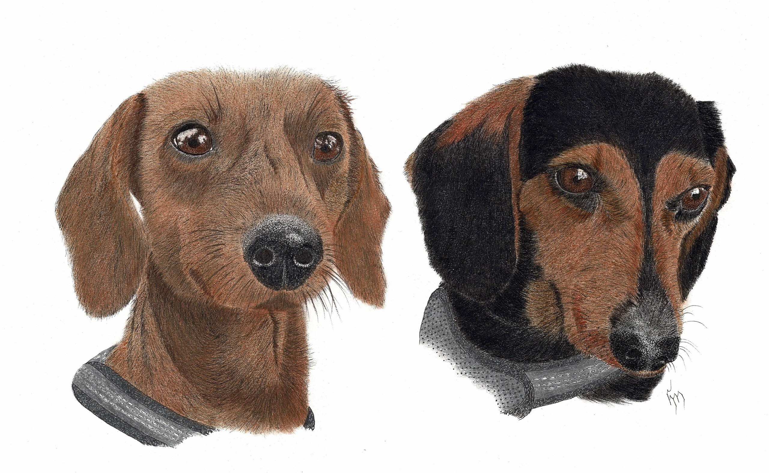 Portret Huisdier Teckel Kleurpotlood Pentekening Hondenportret Kunstanders Tekeninghond Tekeninghuisdier