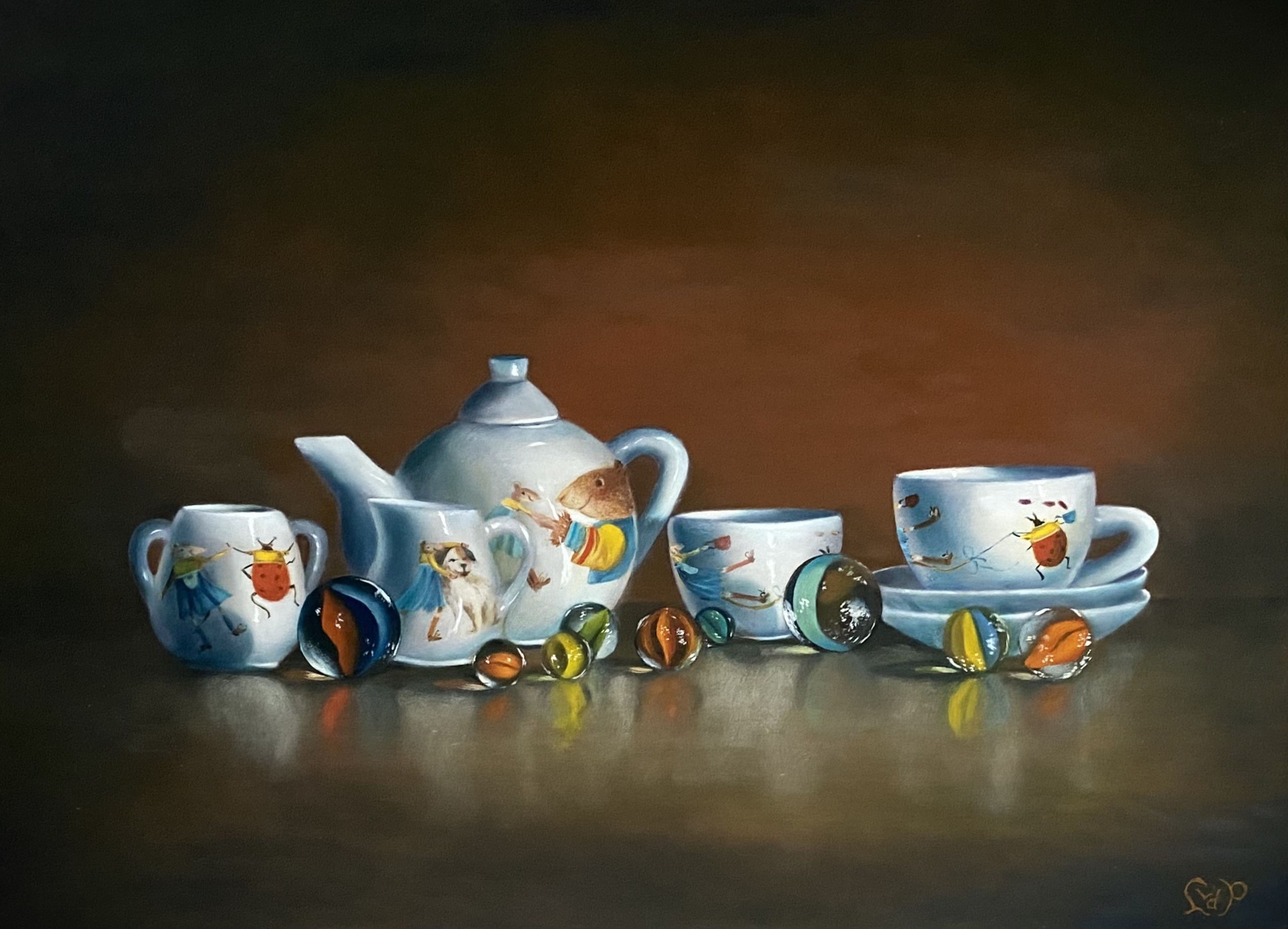 Speelgoed Knikkers Stillevenschilderij Kinderservies Liannevanderplaat Realistischschilder Nostalgischspeelgoed