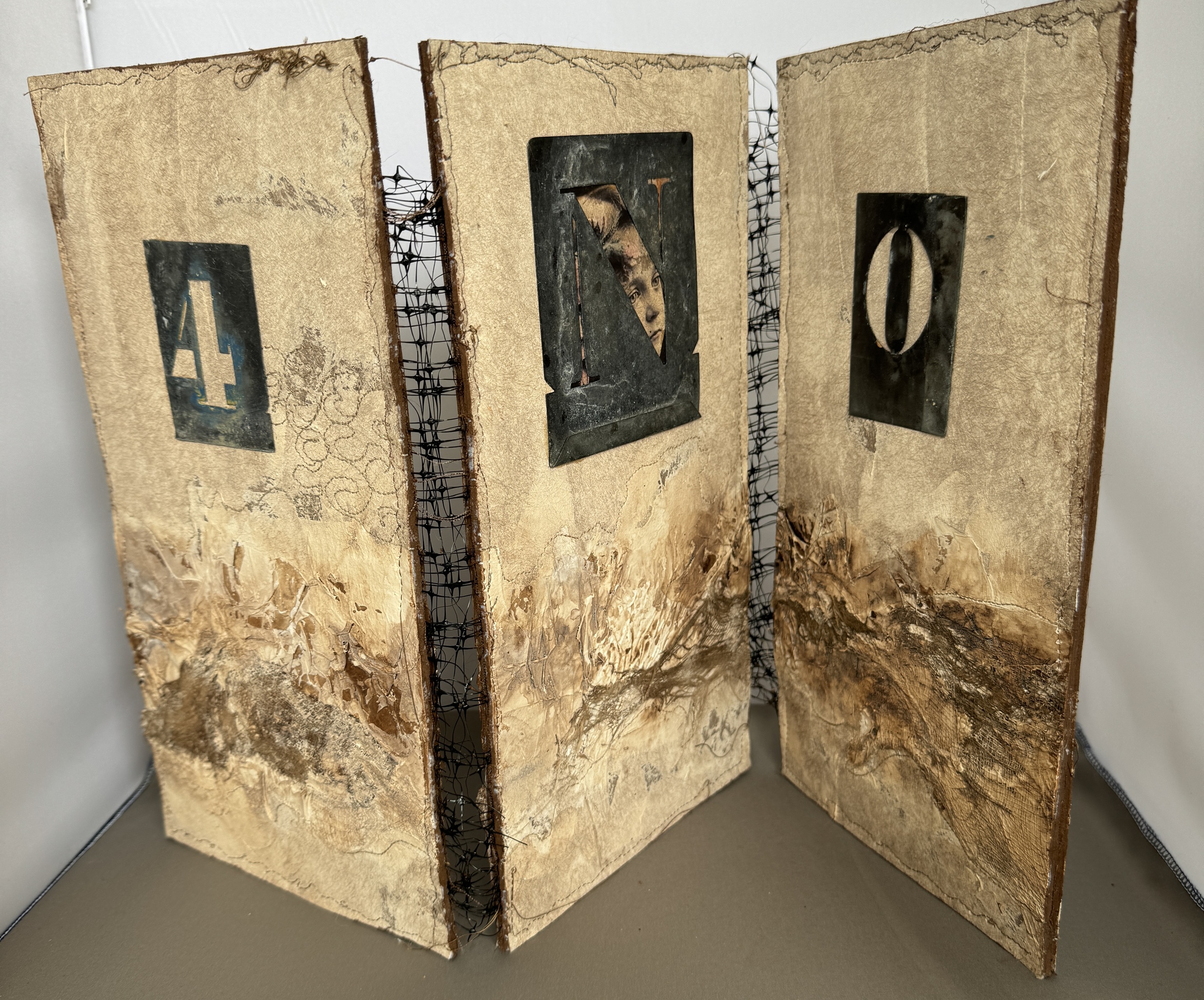 Mijn grootste uitdaging ligt in het vinden van een balans tussen tegenstellingen; zoals de zachte textuur van garens en het pasteuze van verf. Hierbij werk ik in lagen met als doel te zorgen dat de lagen naadloos in elkaar overgaan zodat het een samenhangend geheel wordt. Het is iedere keer weer een verrassing hoe het werk zich opbouwt. Dat maakt dat het me blijft boeien en geeft aanzet tot vele experimenten.