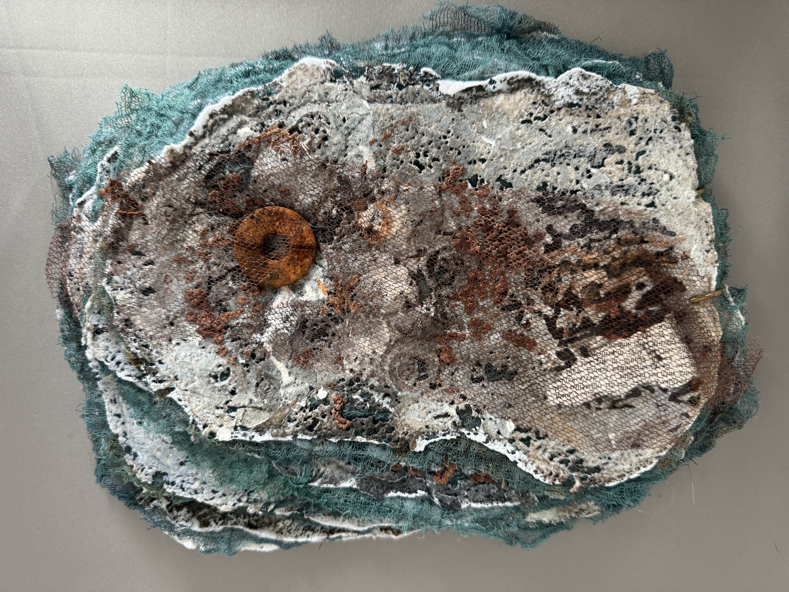 Mijn grootste uitdaging ligt in het vinden van een balans tussen tegenstellingen; zoals de zachte textuur van garens en het pasteuze van verf. Hierbij werk ik in lagen met als doel te zorgen dat de lagen naadloos in elkaar overgaan zodat het een samenhangend geheel wordt. Het is iedere keer weer een verrassing hoe het werk zich opbouwt. Dat maakt dat het me blijft boeien en geeft aanzet tot vele experimenten.