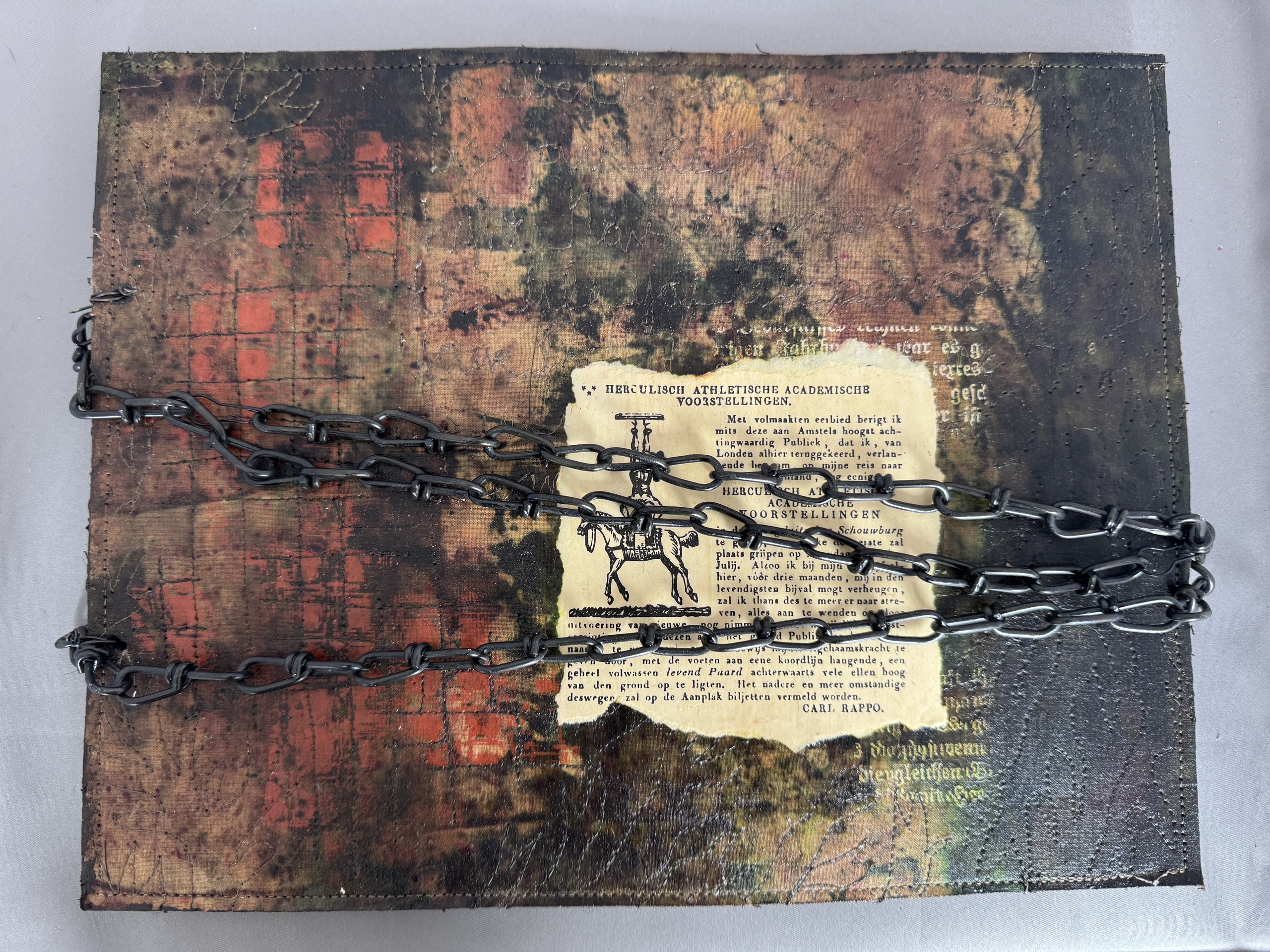 Mijn grootste uitdaging ligt in het vinden van een balans tussen tegenstellingen; zoals de zachte textuur van garens en het pasteuze van verf. Hierbij werk ik in lagen met als doel te zorgen dat de lagen naadloos in elkaar overgaan zodat het een samenhangend geheel wordt. Het is iedere keer weer een verrassing hoe het werk zich opbouwt. Dat maakt dat het me blijft boeien en geeft aanzet tot vele experimenten.