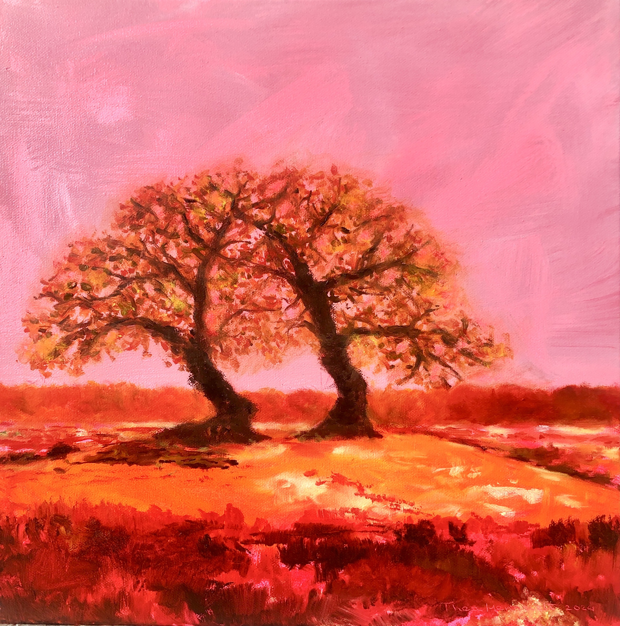 El Rosa🩷, el Rojo🔴 y el Naranja🟠 Olieverf & Acryl op doek 40 x 40 cm. © Thea Hennevelt 2024