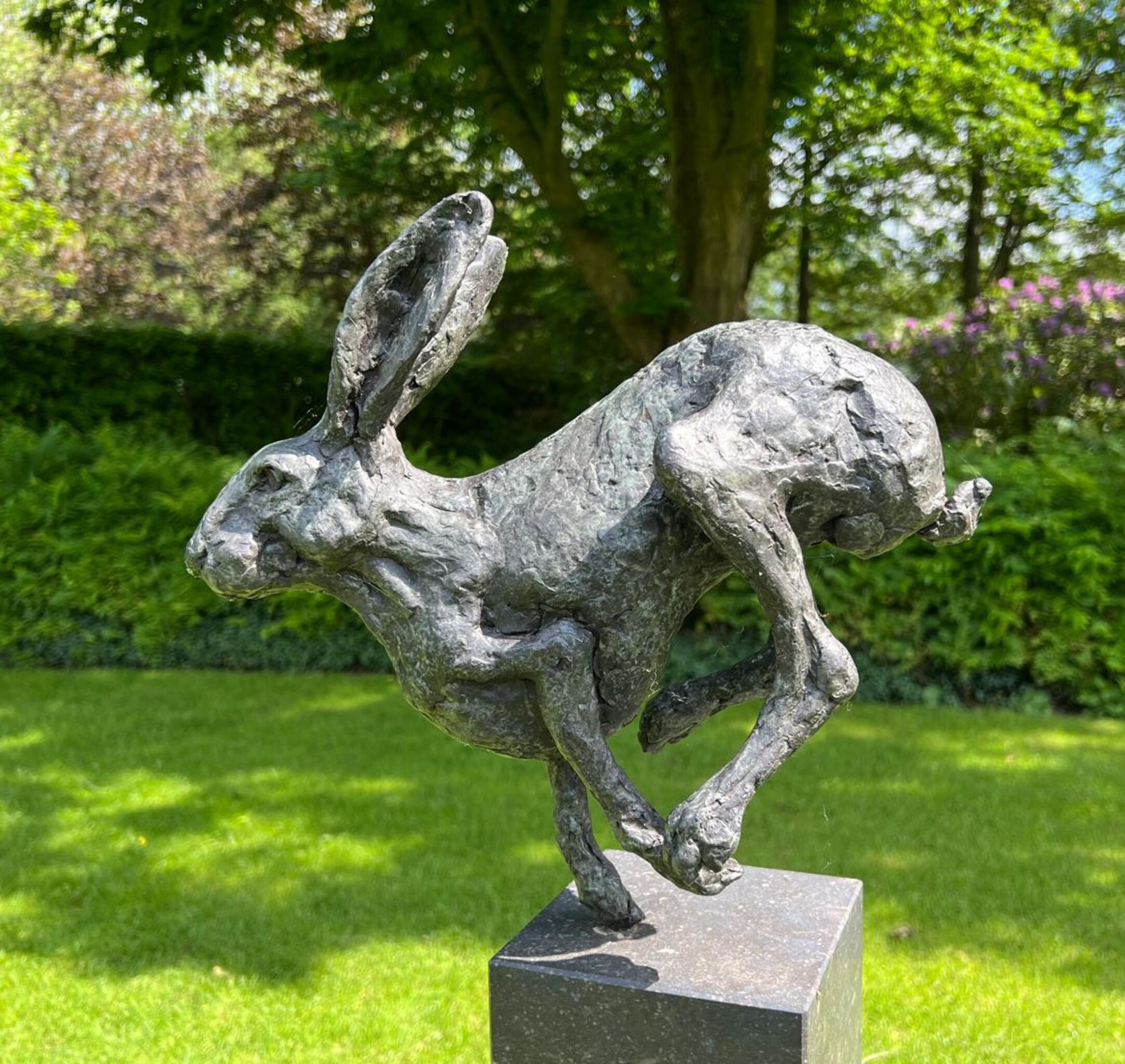 Haasje no. 3 Mooi indien geplaatst op hoge hardstenen sokkel!