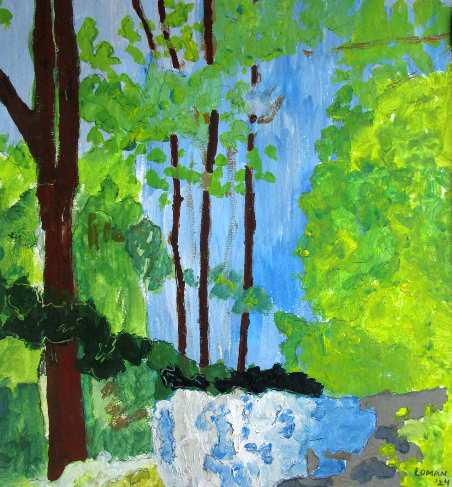 Karel Loman schildert expressief. Zijn landschappen en stads- en dorpsgezichten zet hij in heldere kleuren op papier. De sfeer van het landschap staat bij hem voorop. Loman werkt voornamelijk met temperaverf, aangevuld met inkt of potlood.