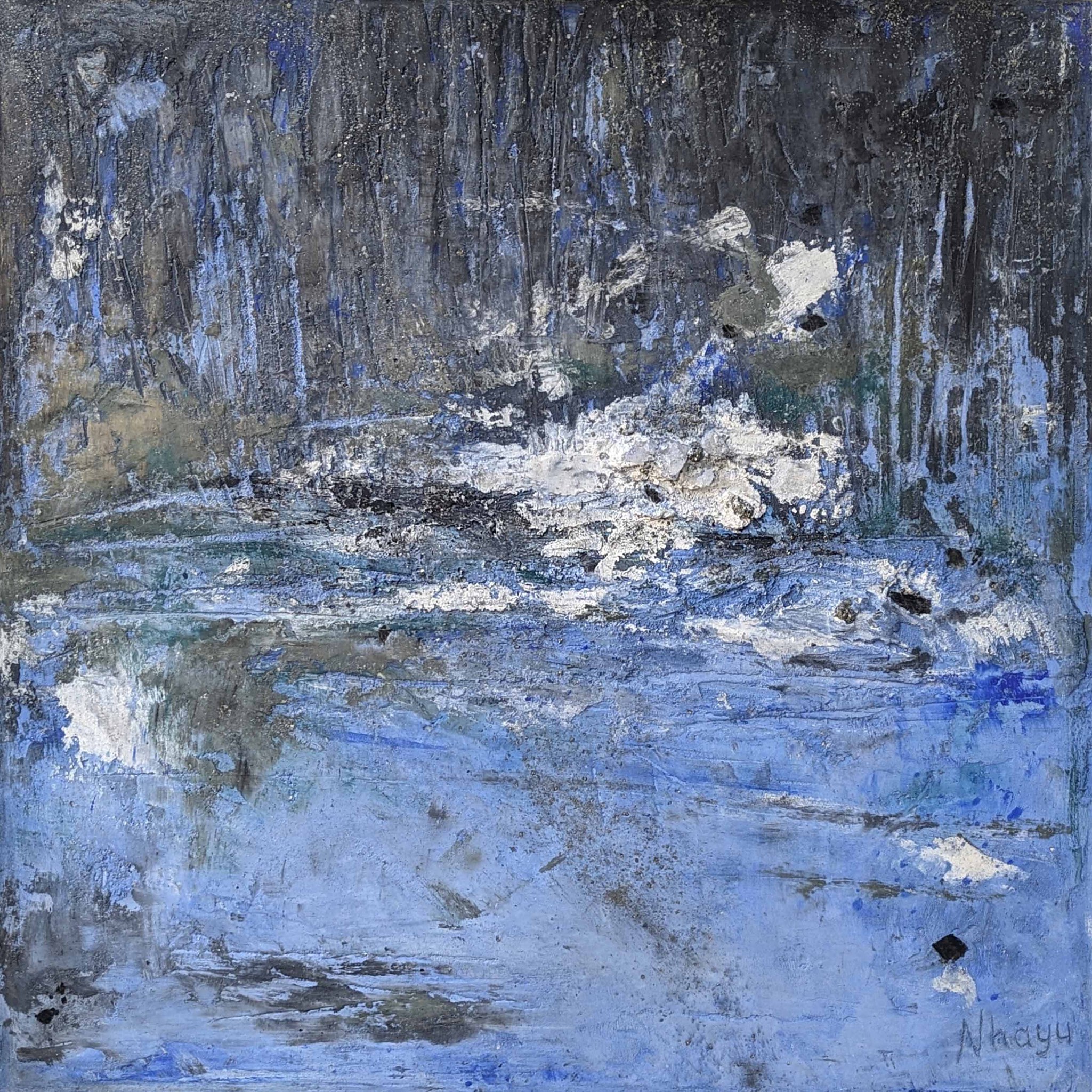 Abstract kunstwerk op hout, kalkpleister, pigmenten, mineralen, levendige textuur *** Feeling the Night Where the stars are shimmering And their sparklibg drops Fall with diamonds I jump from rooftop to rooftop With joy and a bunch of keys Did you you ever count How many gates I've opened..?
