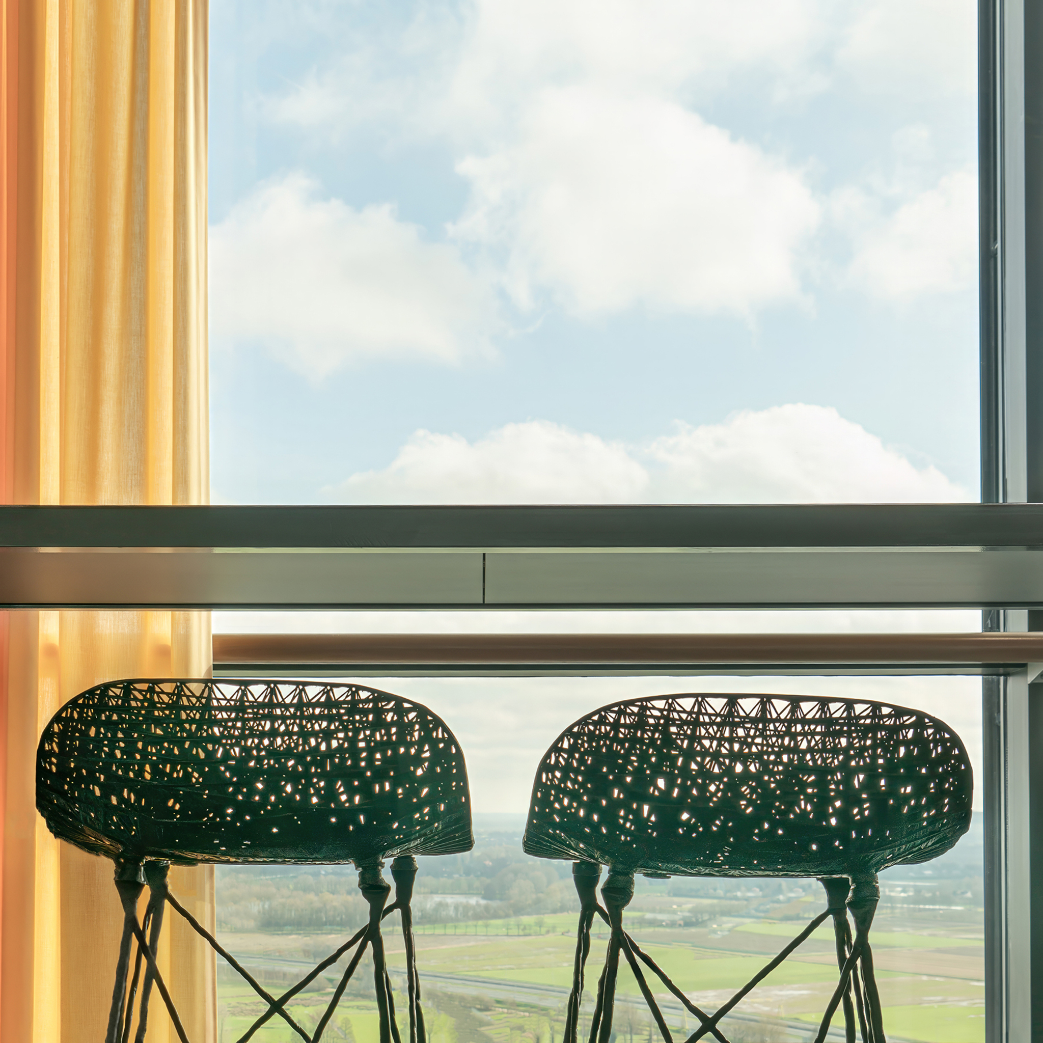 Een stoel bij het raam - 1: vlakglas in het provinciehuis van Noord-Brabant in 's-Hertogenbosch.