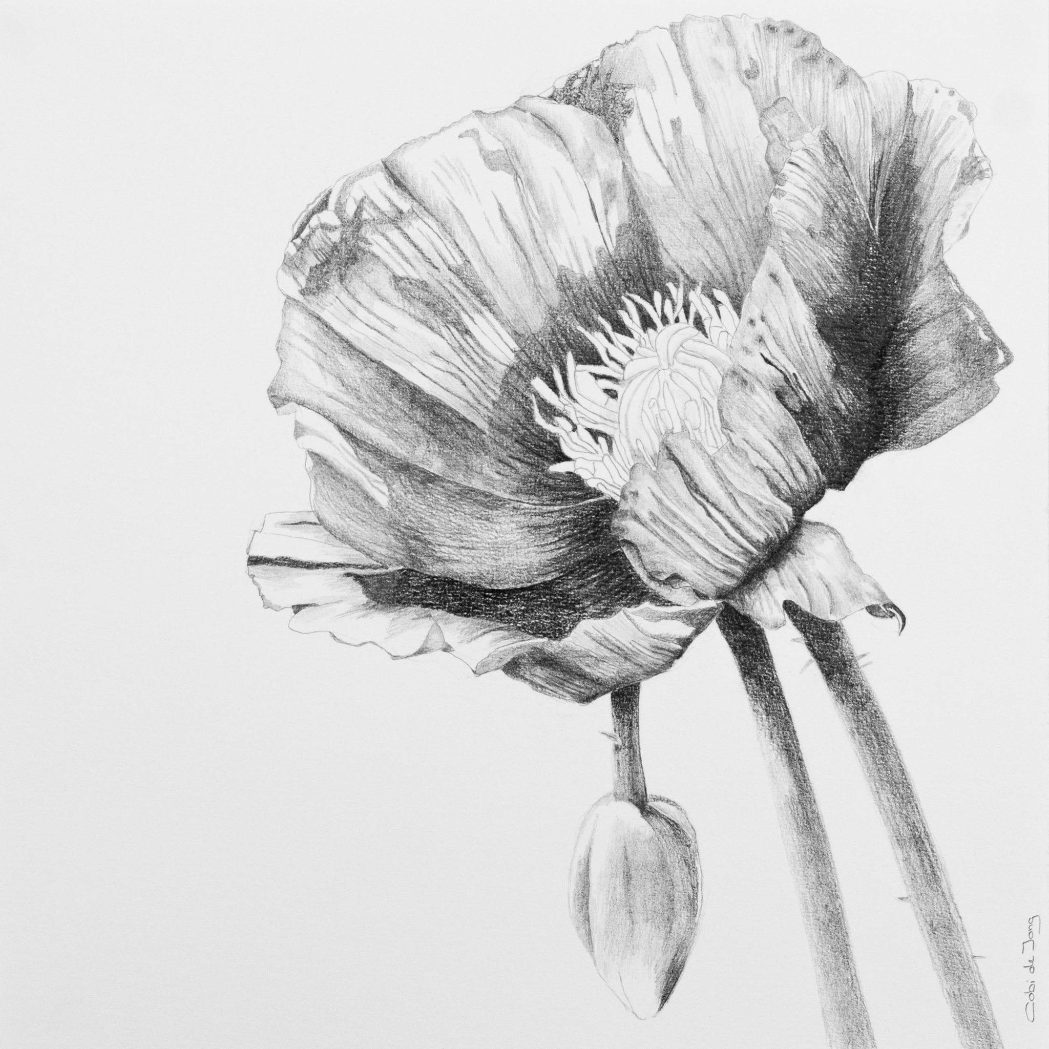 Bloemen Tekening Natuur Bloem Flower Drawing Papaver Potloodtekening Poppy Pencil Snijbloemen Zwart-wittekening