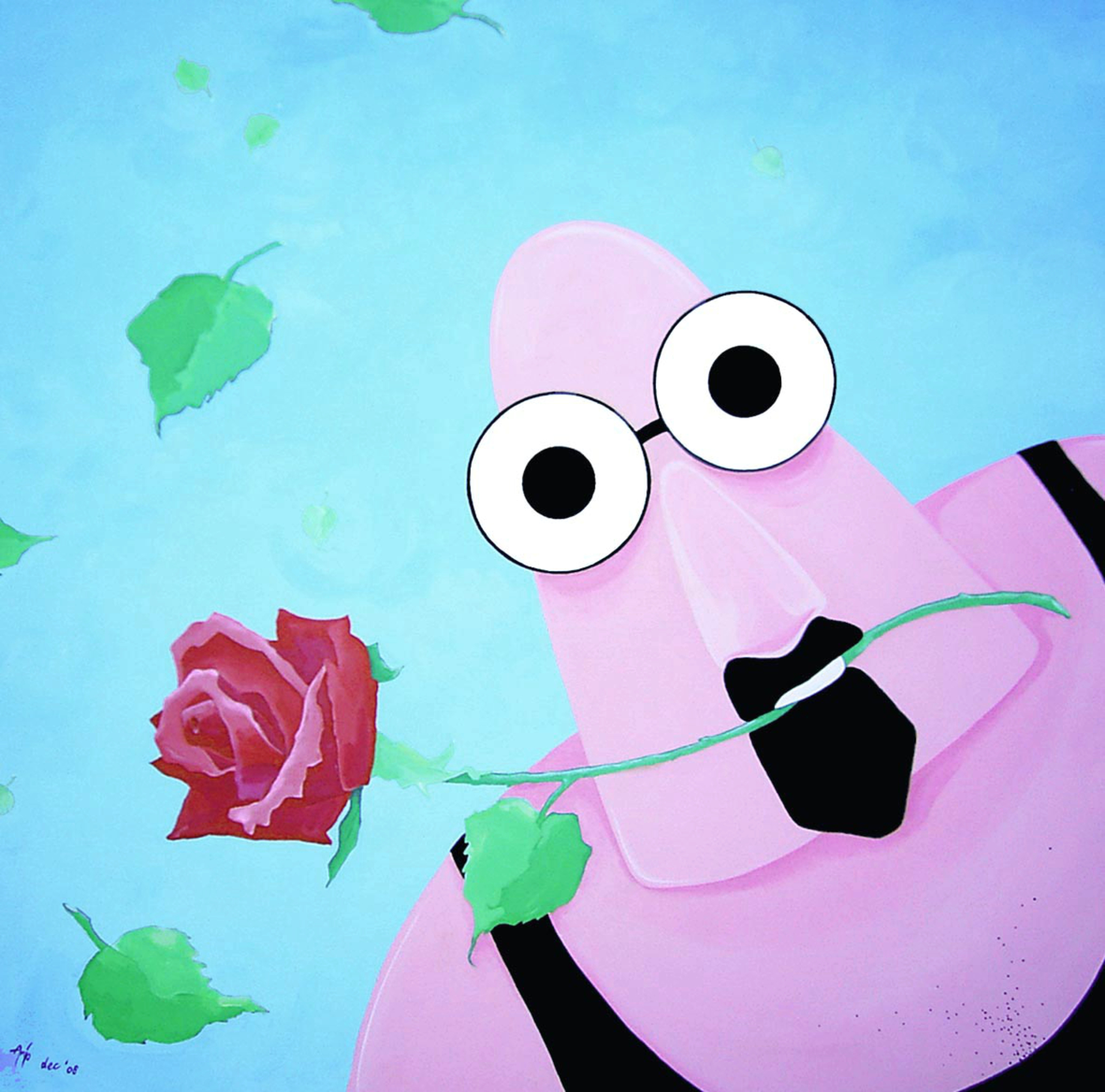 Ik gebruik graag humor en relativering in mijn werk en dan krijg je: een lieve stoere man met roos!