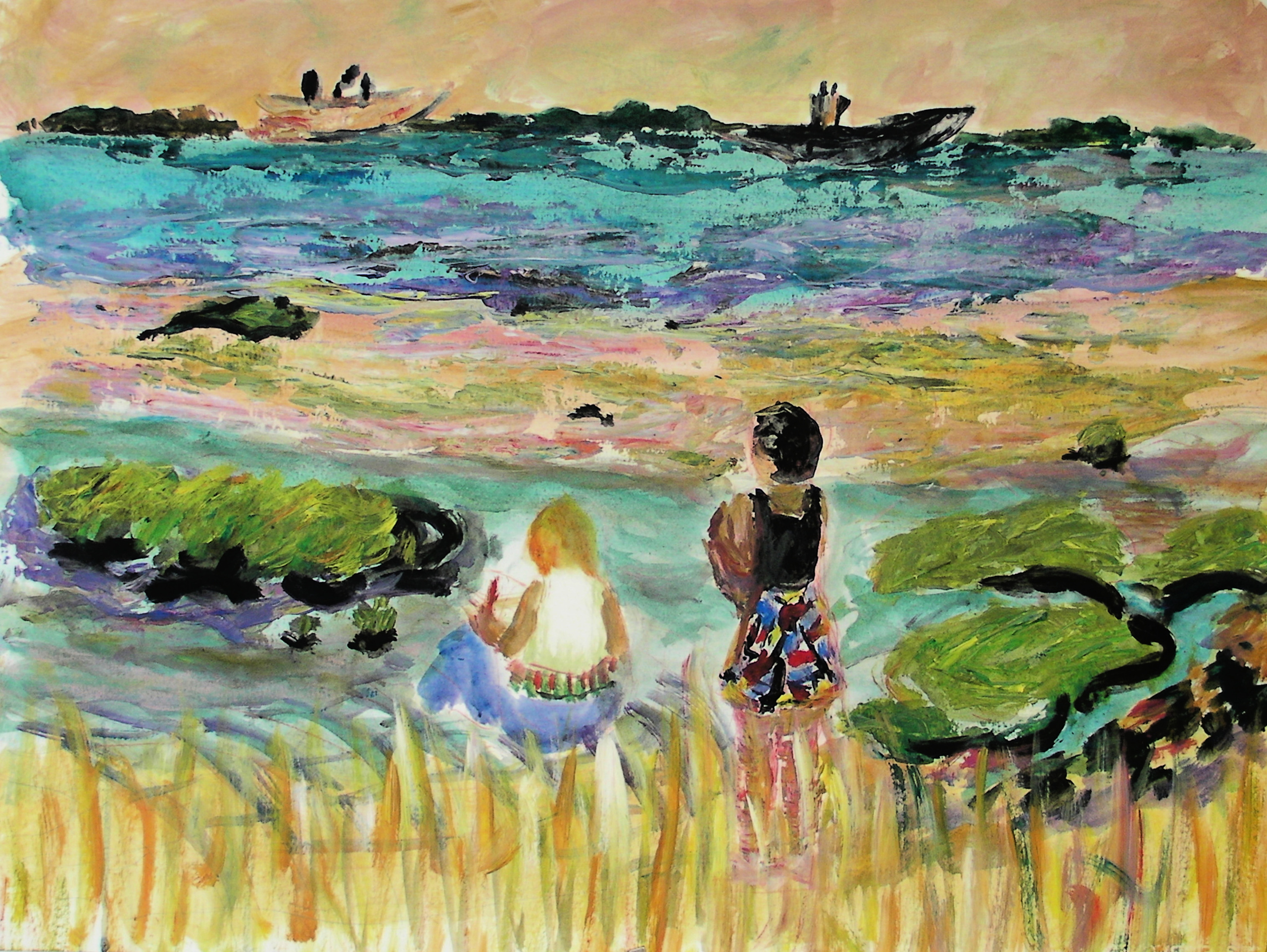 Twee figuren die zijn ondergedompeld in de rust van de natuur en die de grenzeloze vrijheid oproepen die je aan de rand van de horizon vindt. Aanmelden voor mijn nieuwsbrief >> Bezoek ook mijn blogs >> Geïnteresseerd in dit werk? Stuur dan een e-mail naar wil@gabriellacleuren.com met uw vragen.