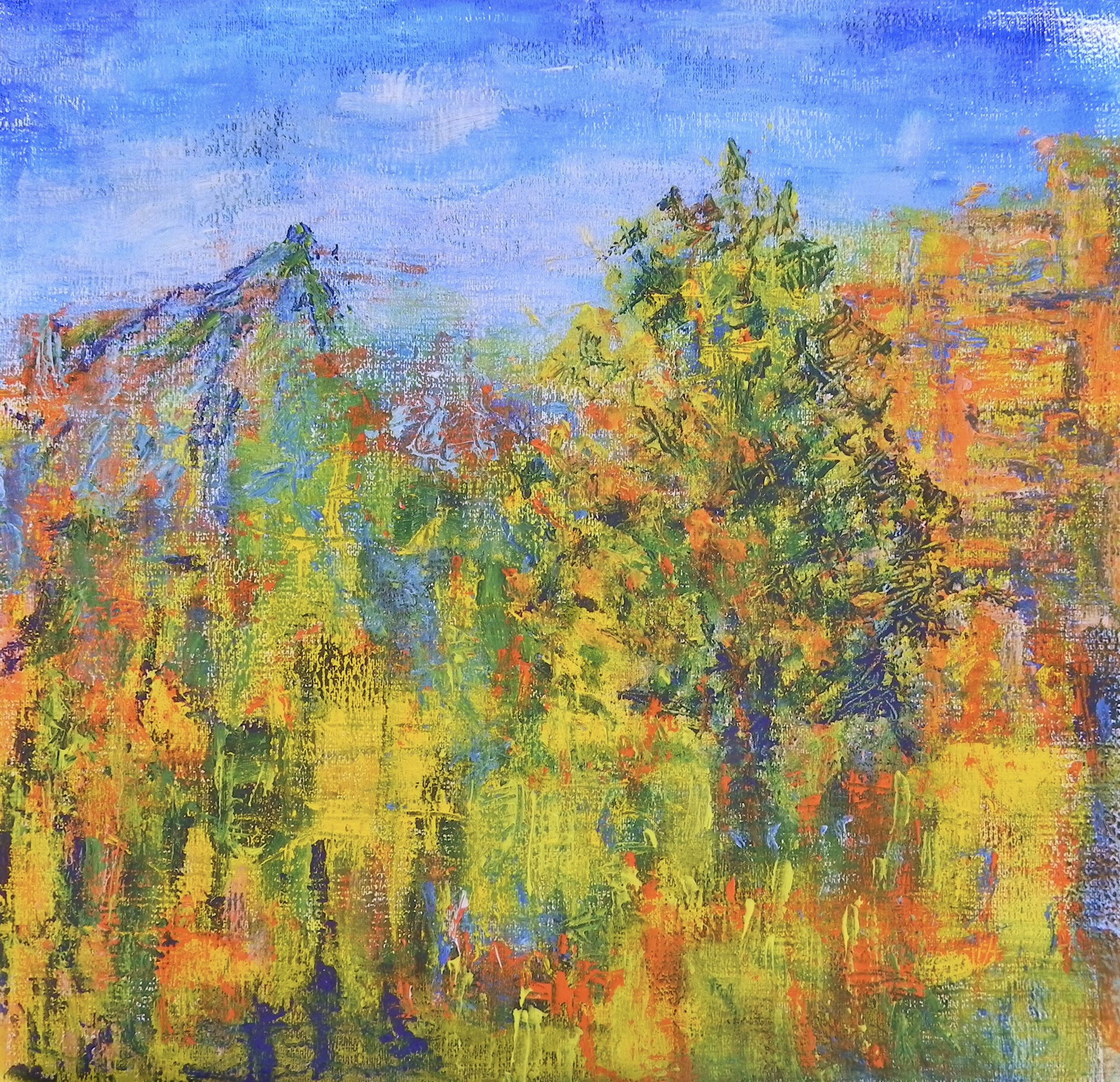 Oranje Geel Landschap Blauw Oker Paars Groen Bergen Acrylverf Zonnig Spanje Impressionisme Mediterraan