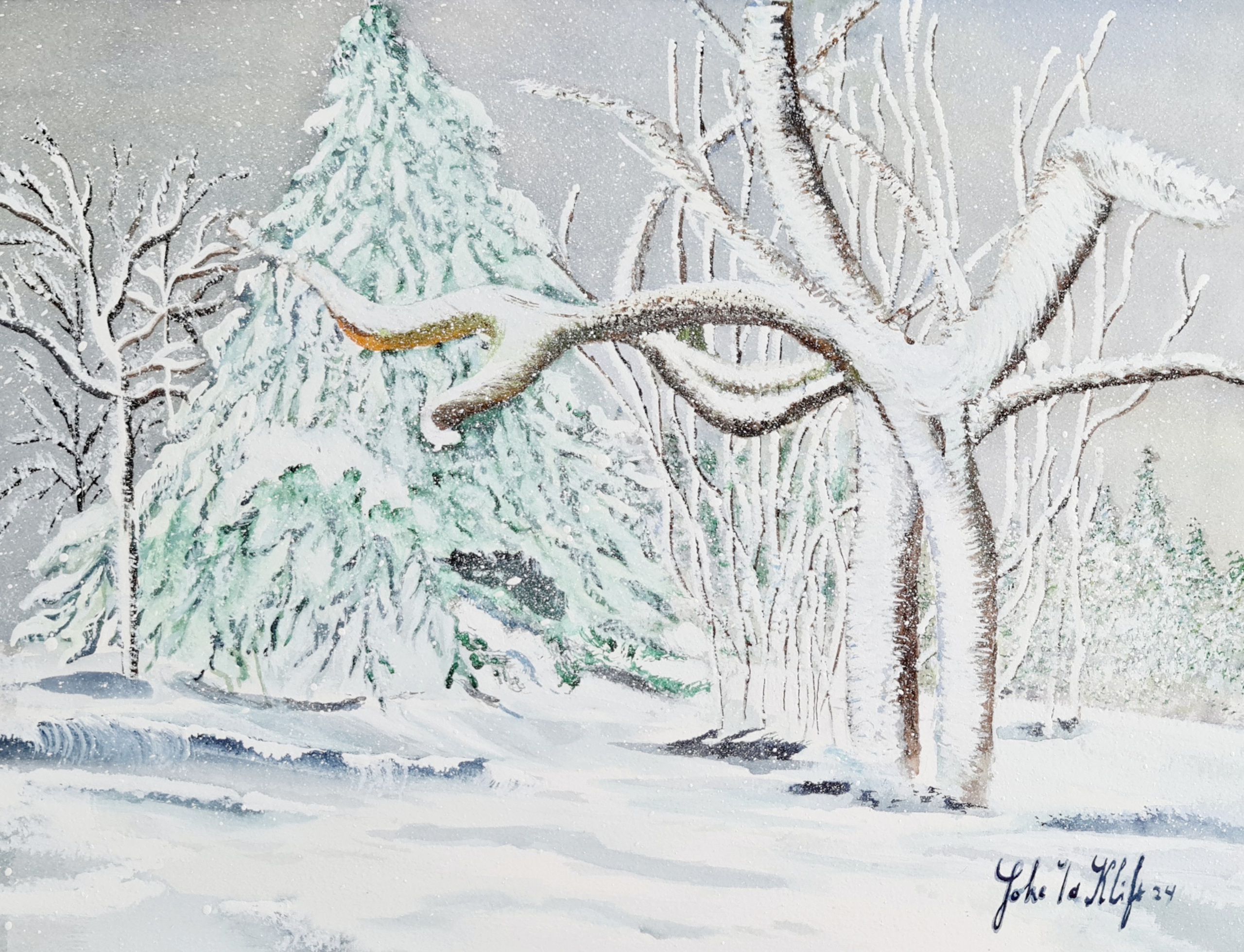 Ik zal mij even aan u voorstellen. Mijn naam is: Joke van de Klift, geboren in Ede 1945, mijn jeugd heb ik doorgebracht in Leersum, een zeer bosrijke omgeving. In 2007 ben ik begonnen met acryl en aquarel wat mij veel plezier en voldoening geeft. Sinds 2011 woon ik in Lelystad, en ben op zoek gegaan om mijn hobby verder te ontwikkelen, zo ben ik in 2012 bij het LAK beland. In dat zelfde jaar begon Henk Siepel met het geven van een cursus aquarelleren en die ben ik gaan volgen. Je kunt jezelf daar blijven ontwikkelen. Ik heb al aardig wat werken gemaakt en zal ze hier aan u tonen.