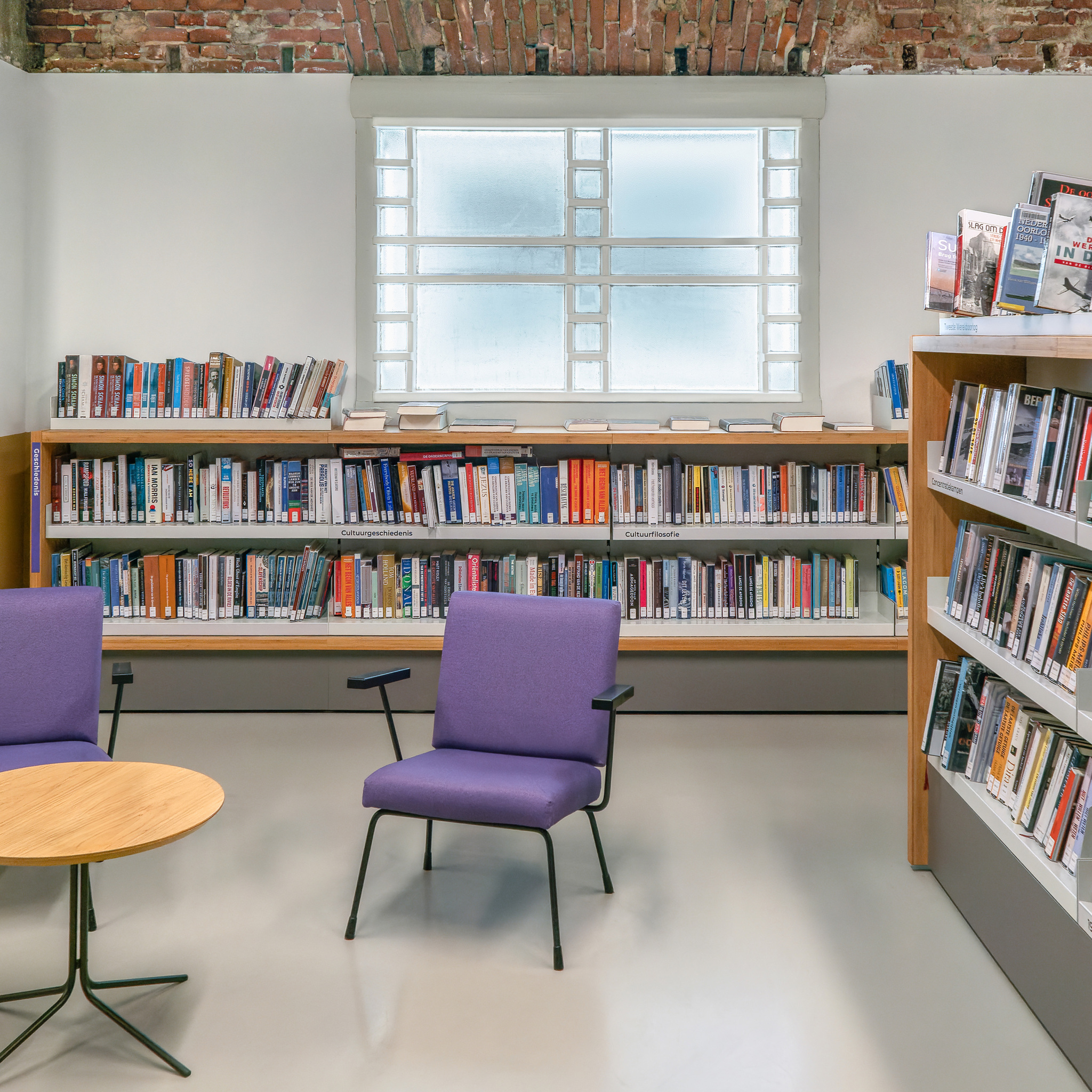 Een stoel bij het raam - 3: figuurglas in Bibliotheek Neude in Utrecht.
