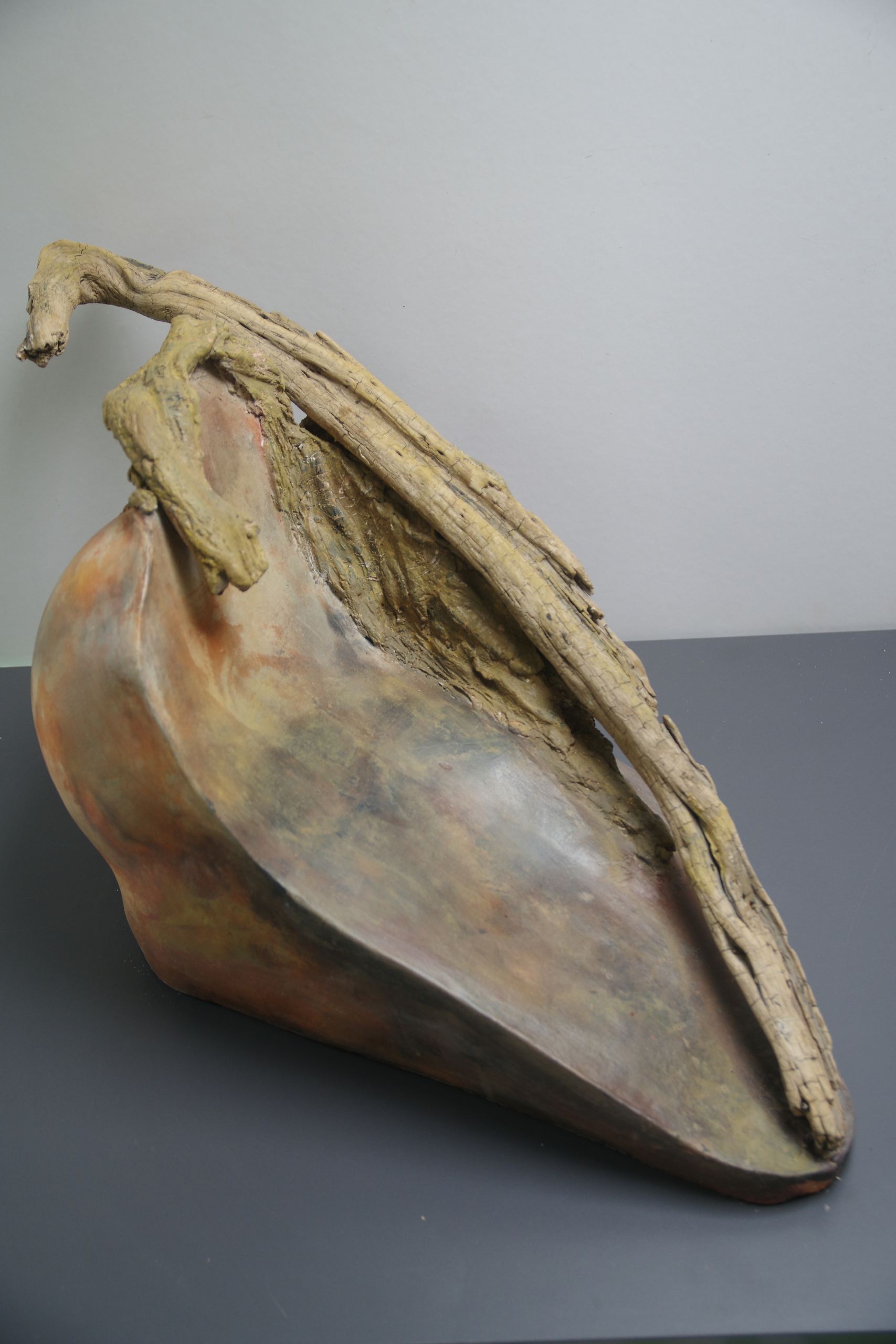 Mijn keramiek is rond, gebogen, zacht en geleidelijk verlopend met verrassende details van laagsgewijs opgebouwde onderdelen die juist speciale aandacht krijgen. Ik laat me uitdagen door het zogenaamde primitieve stoken; pitfire en naked raku.