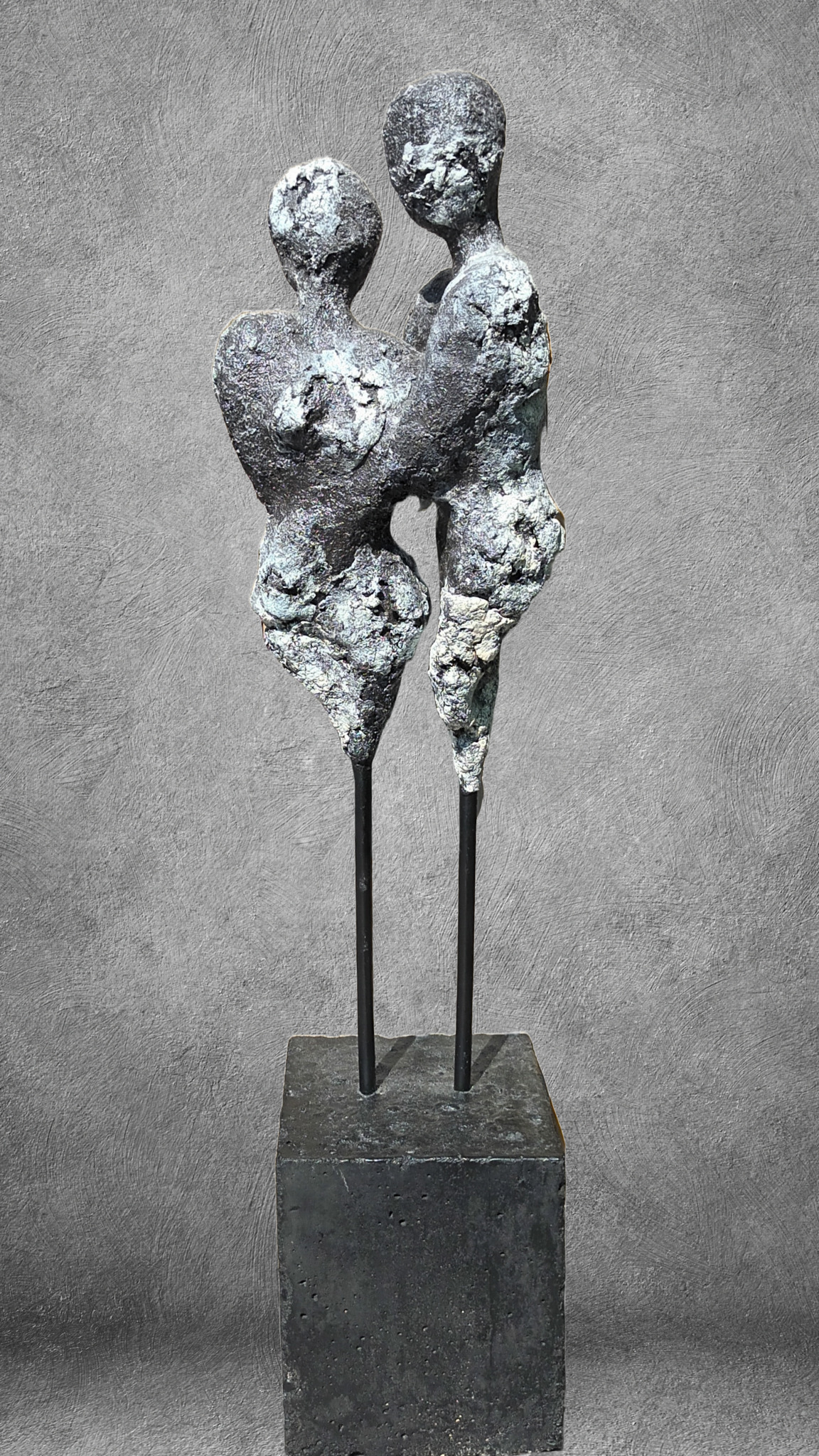 Jij alleen... Een beeld in klei, afgewerkt met paverpol, paversand en artstone op een betonnen sokkel.