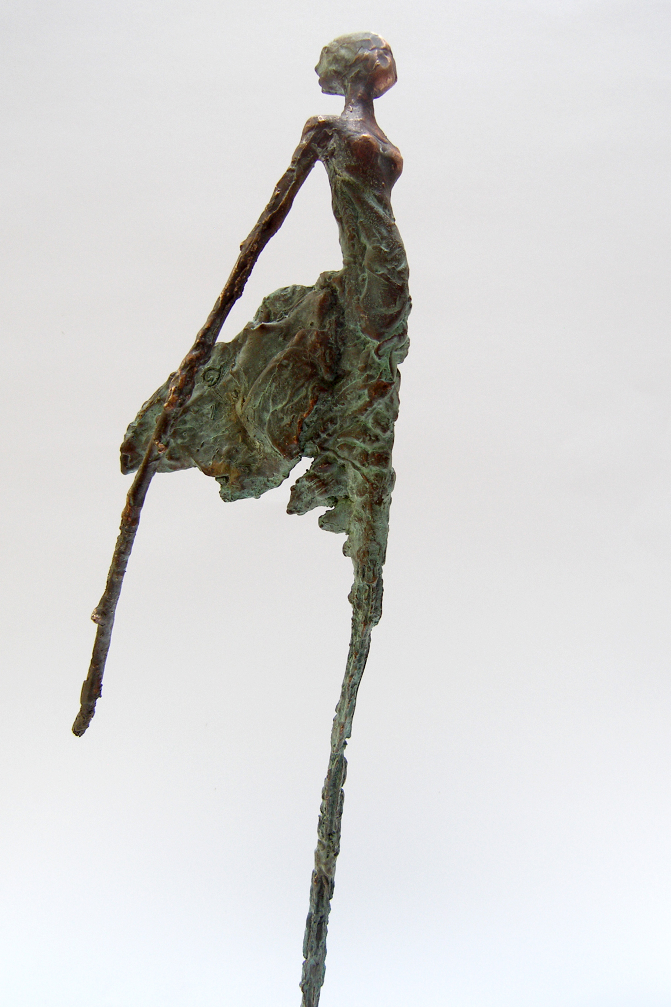 Brons Beeld Beeldje Vrouw Beweging Patina Groen
