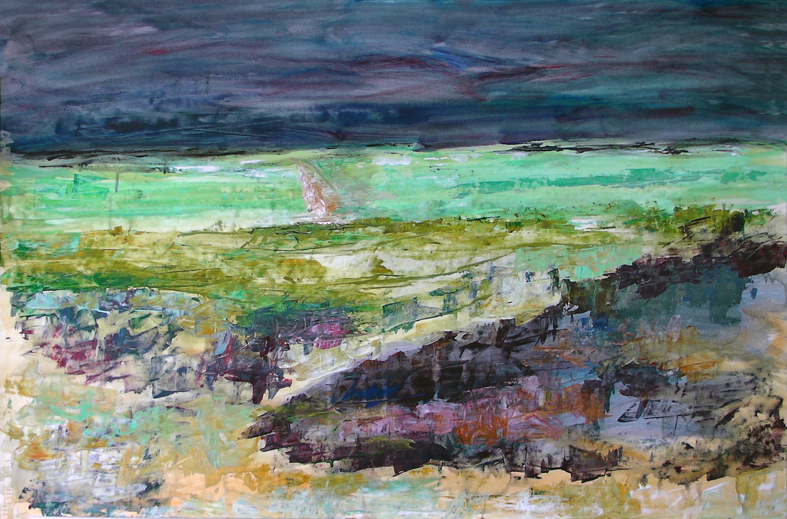Hier verken ik het emotionele landschap dat over het doek kronkelt.
