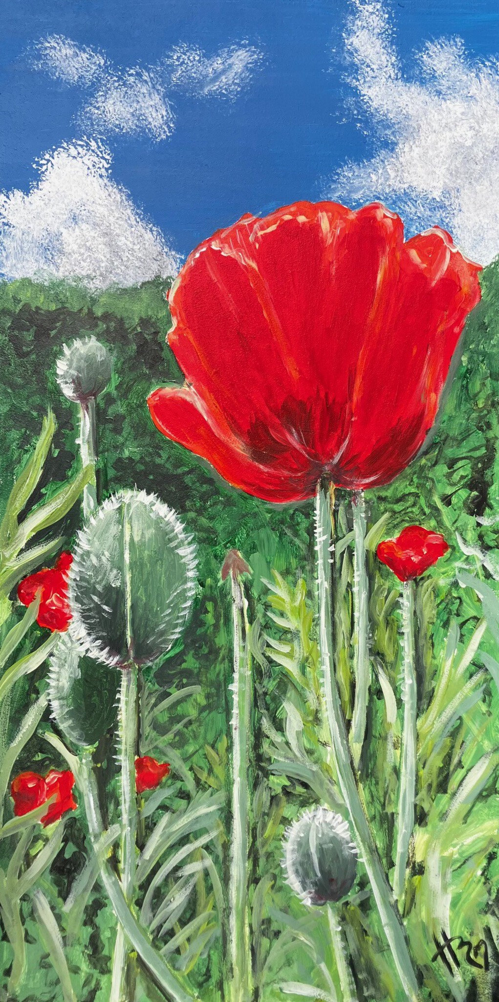 Rood Realistisch Acrylverf Red Klaprozen Dibond