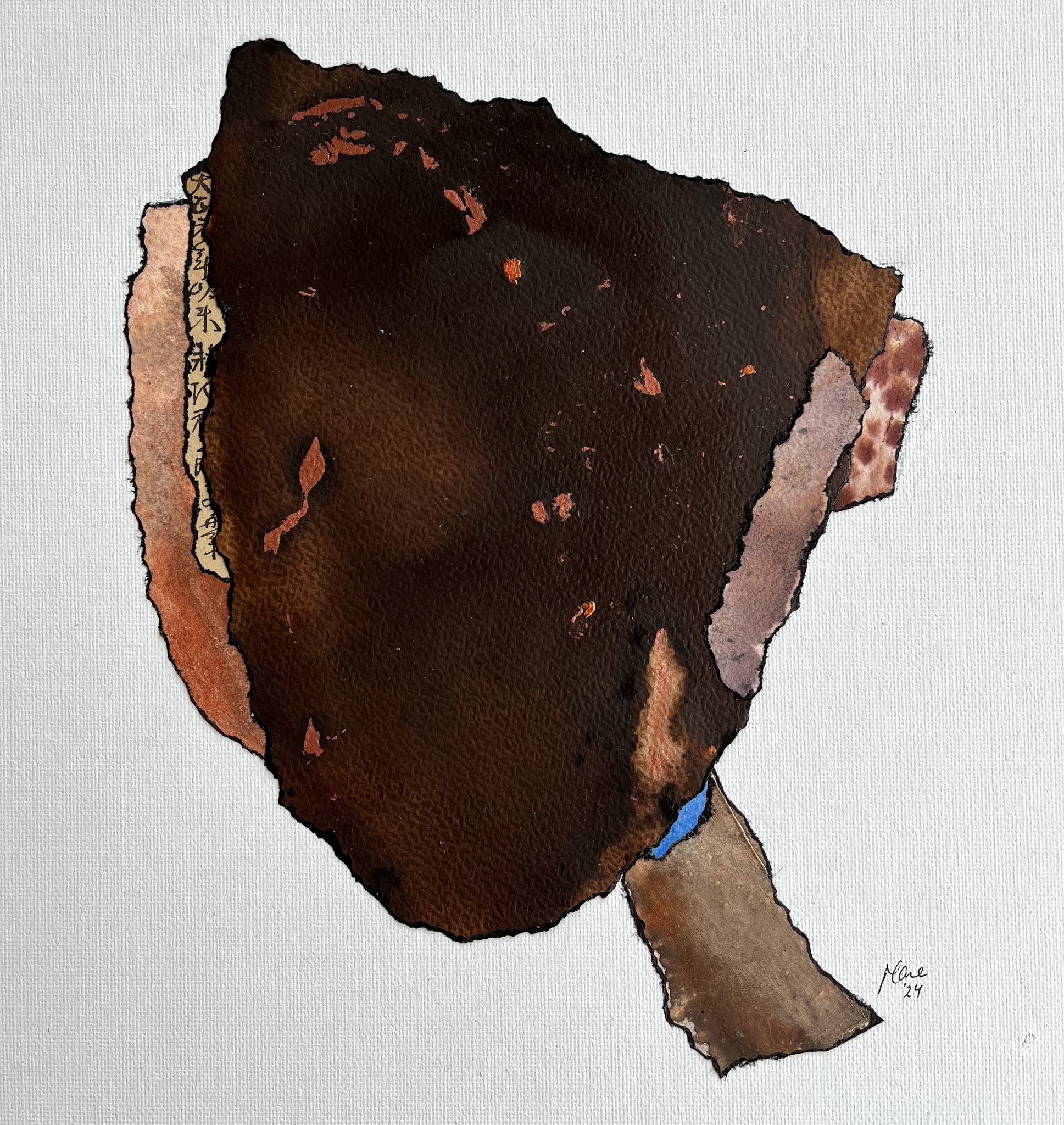 Face 11 uit de serie 'All our Faces' Collage van handbeschilderd papier, Japanse tekst en metallic acrylverf.
