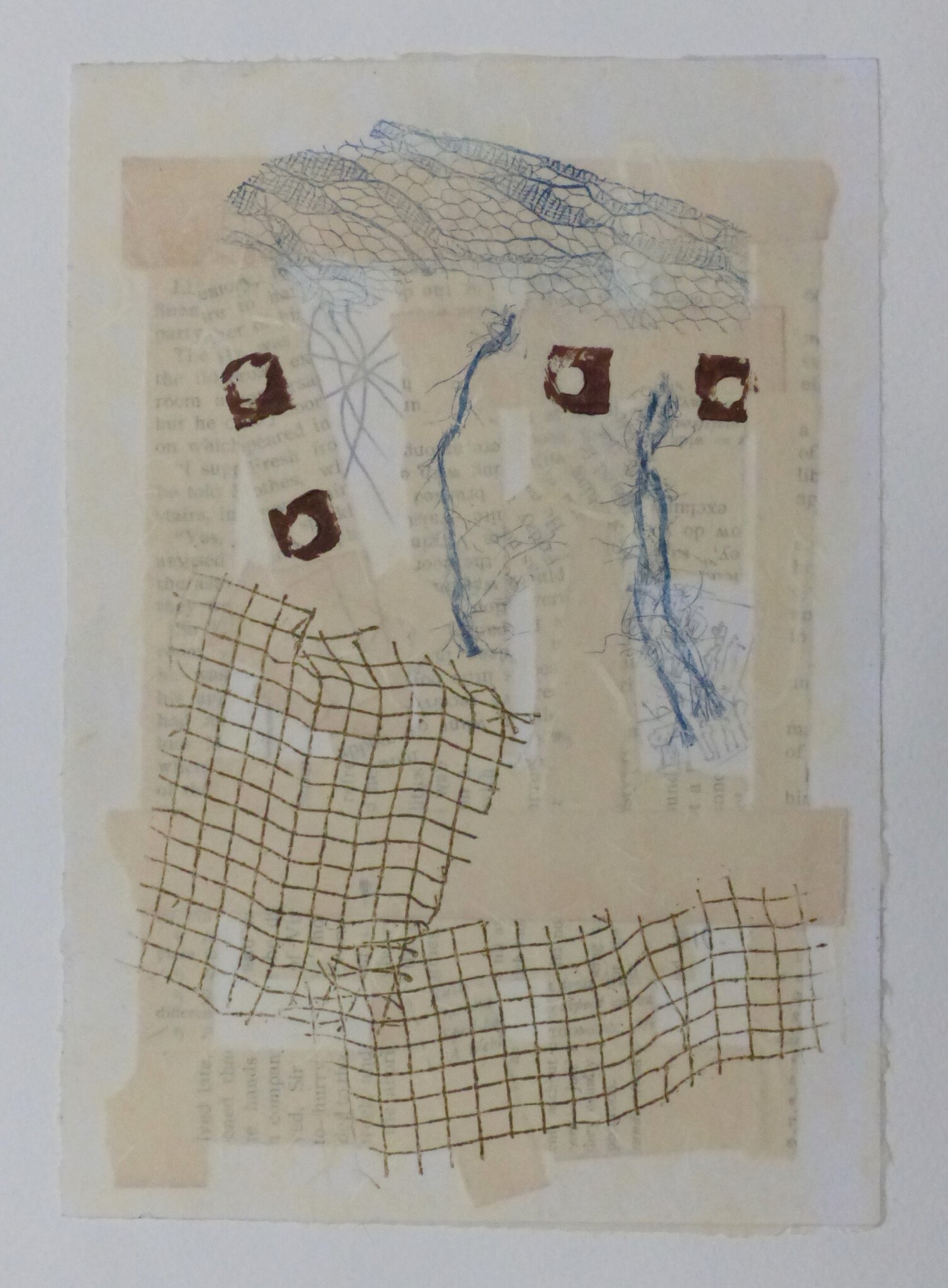 "With connections and texture / loose thoughts are given sense." (collage - monoprint, image 15x21 cm)